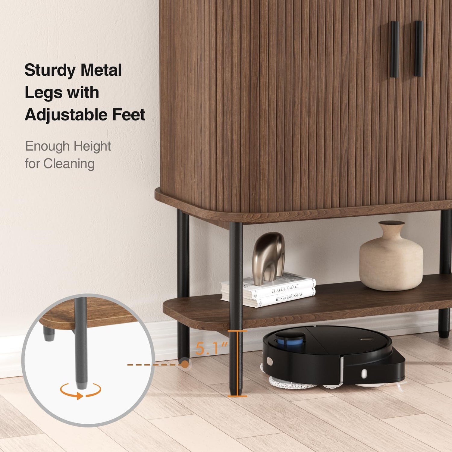 - Sturdy and Practical Material: This fluted coffee bar station cabinet with storage is made of high quality engineered materials to last a long time. The sturdy frame and shelves can bear the weight of the wine bottle without warping or breaking. The bottom has solid metal legs, which are stable while leaving enough room for easy cleaning