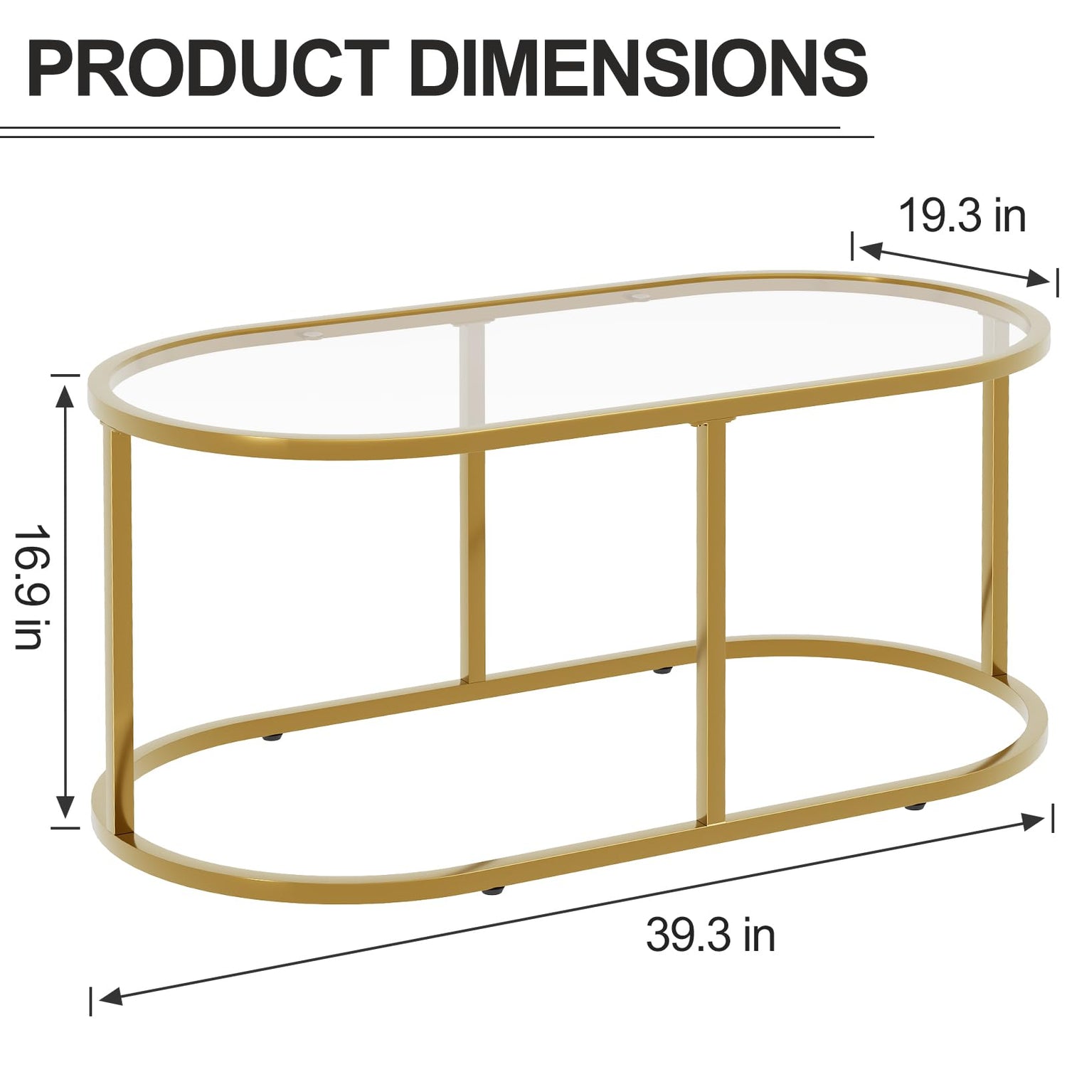 - 【UNIQUE & ELEGANT】The oval coffee table with modern design, clear solid glass top with gold metal frame, adding a touch of beauty and elegance to your living room or office.