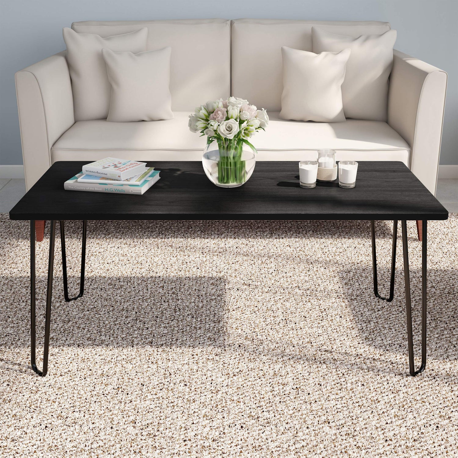 Coffee Table with Hairpin Legs - Modern Industrial Style Home Decor - Woodgrain-Look and Steel Accent Living Room Furniture by Lavish Home (Black)