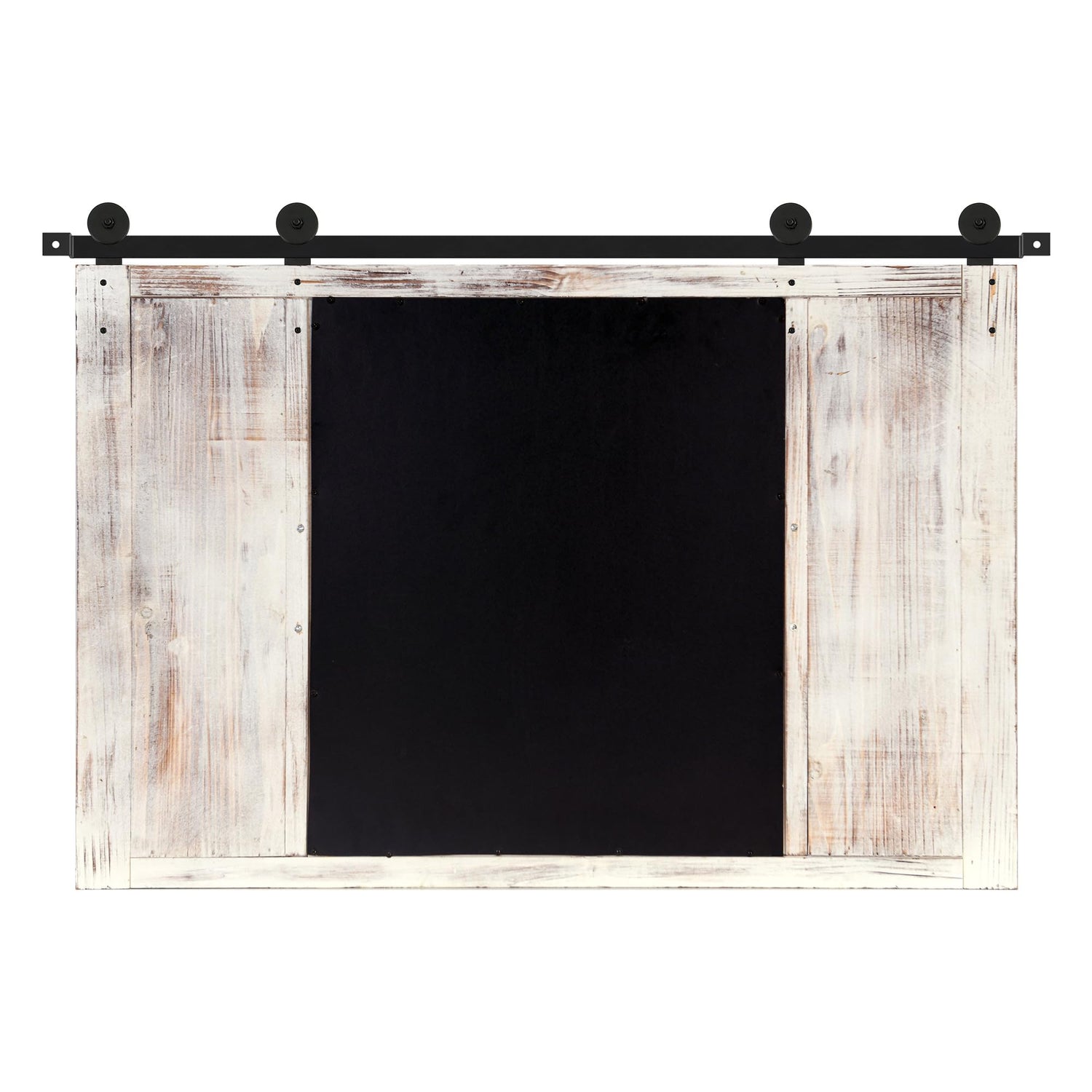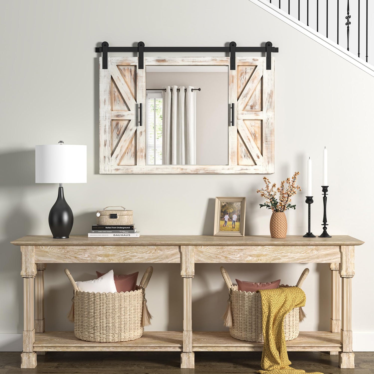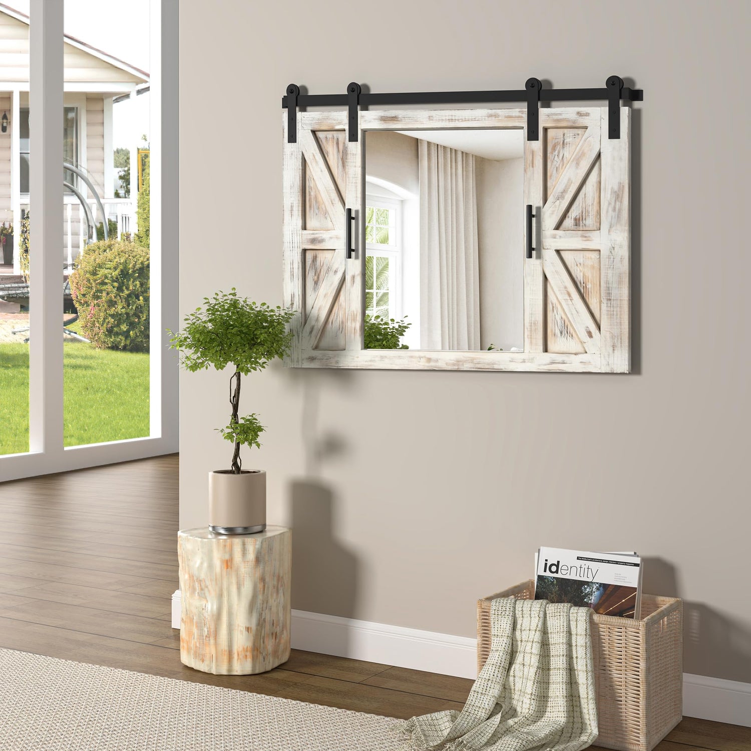 COGOOD Farmhouse Barn Door Mirror - 37" x 26" Rustic Wood Framed Mirror Wall Decor for Dining Room, Bathroom, Living Room, Bedroom Decorative, Rustic White