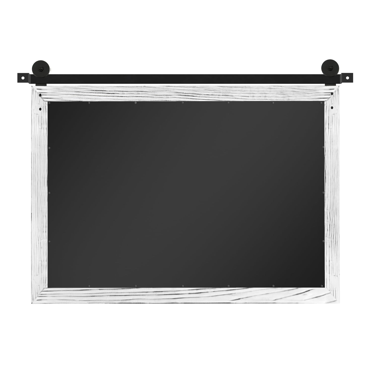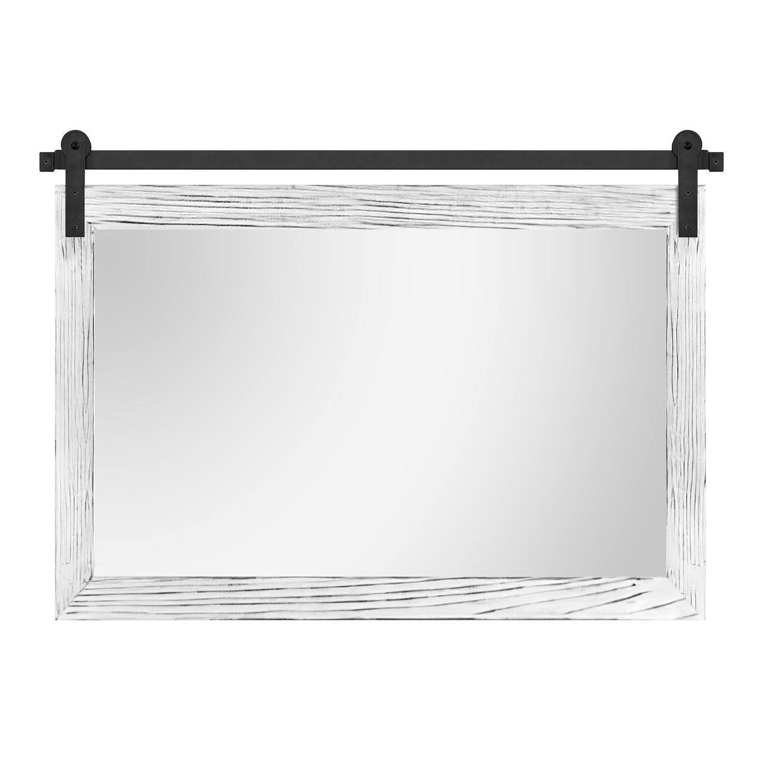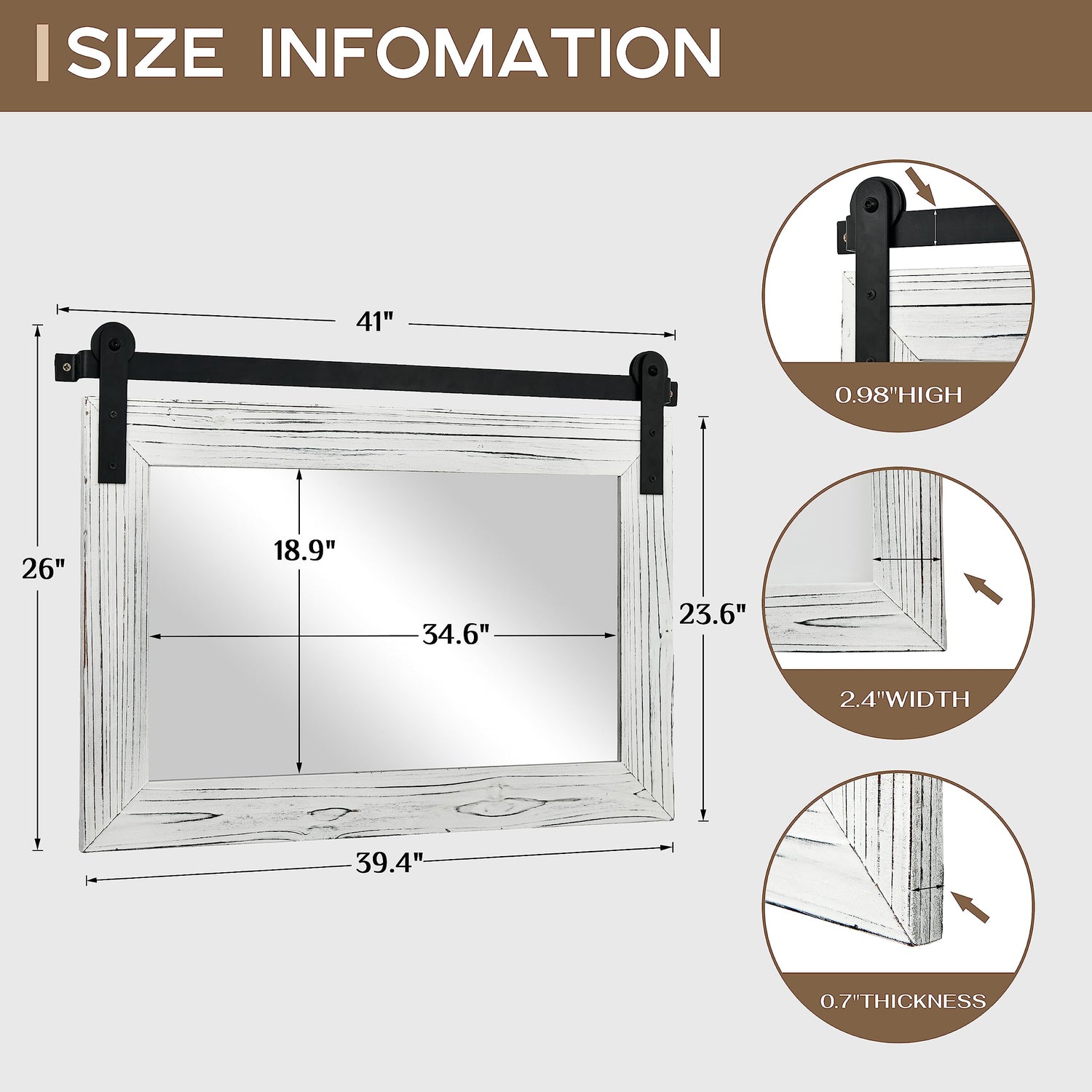- EASY TO INSTALL: The overall size of this rustic mirror is 40.9 x 26 x 0.67 inch, and the display size of the mirror is 34.6 x 18.9 inch. The track is 41 inch. You can fix the pulleys to the mirror first, then mount the track on the wall and finally snap the pulleys onto the track to complete the hanging