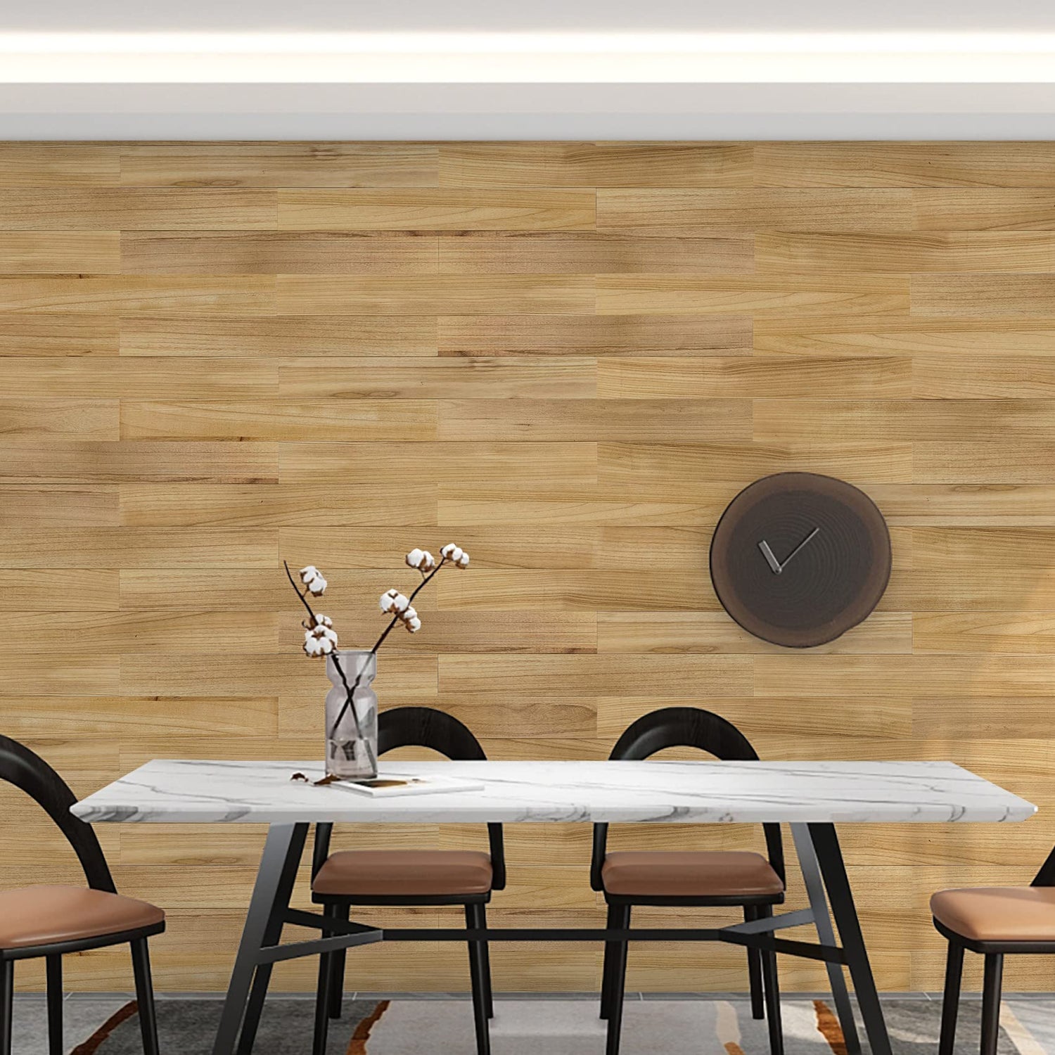 - 【Special Design】100% Solid wood paulownia wooded wall planks with strong self-adhesive tape back strips. Teaky color with sanded smooth texture shows a simple but personalized style. By using real wood, its natural vein and texture gives slight color and shade variation, each board has its own unique character that cannot be replicated