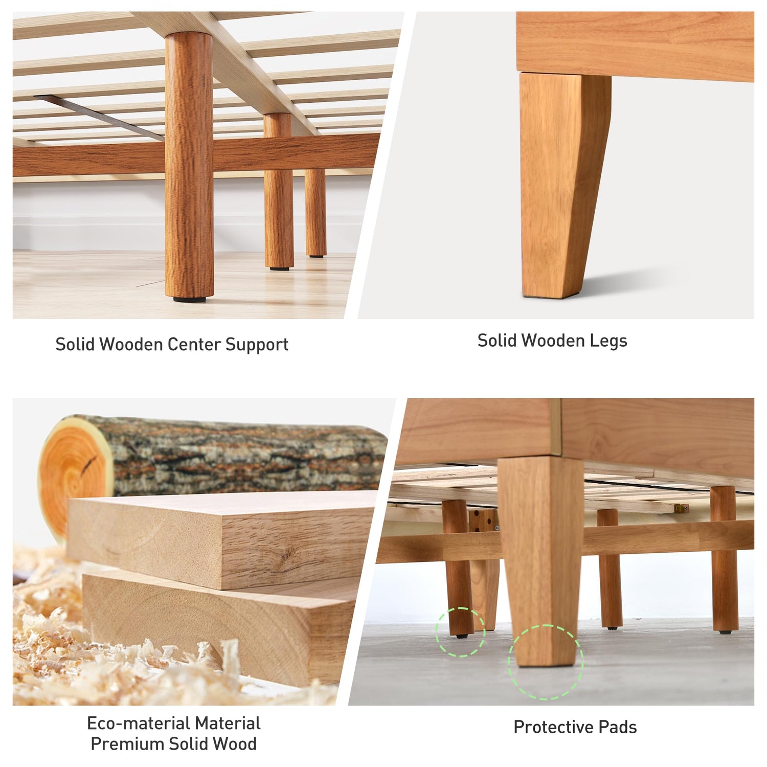 - 【Strong Stability 】:More supporting solid wood legs ensure the stability of the bed frame(king size and queen size:14 legs,fullsize:10 legs,twin size:6 legs)Won't hear the squeak of the bed frame rocking when you roll over in the middle of the night. twin size supports a maximum weight capacity of 350 lbs, while all other sizes can support up to 800 lbs