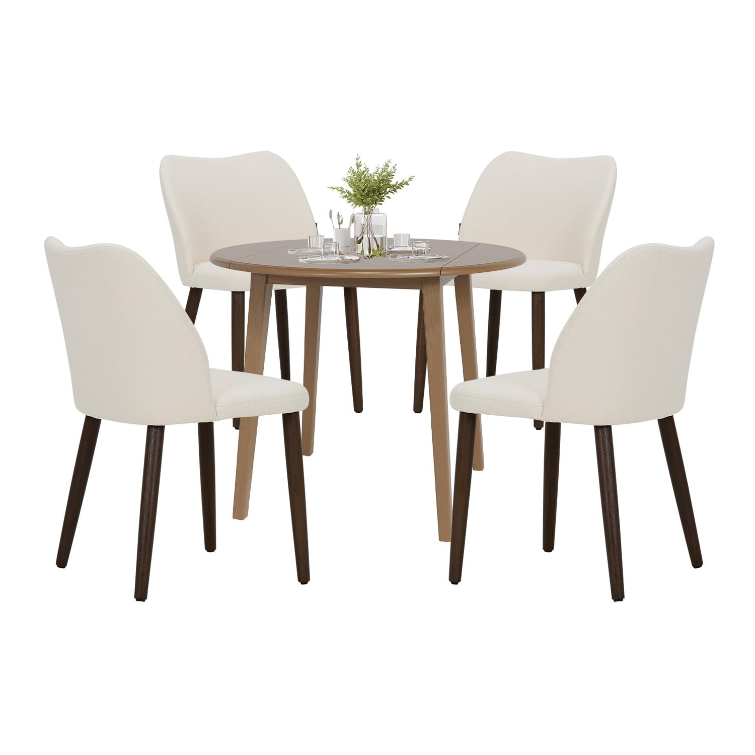 COLAMY 5-Piece Extendable Dining Table Set for 4, 36" Kitchen Round Wood Table with 4 Retro Dining Room Chairs, Light Brown/Beige