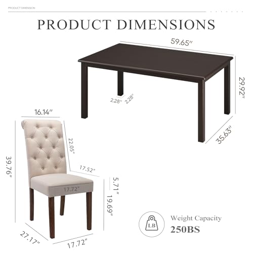 COLAMY 7-Piece Dining Table Set for 6, 60" Rectangular Wooden Kitchen Table with 6 Tufted Dining Room Chairs, Brown/Beige