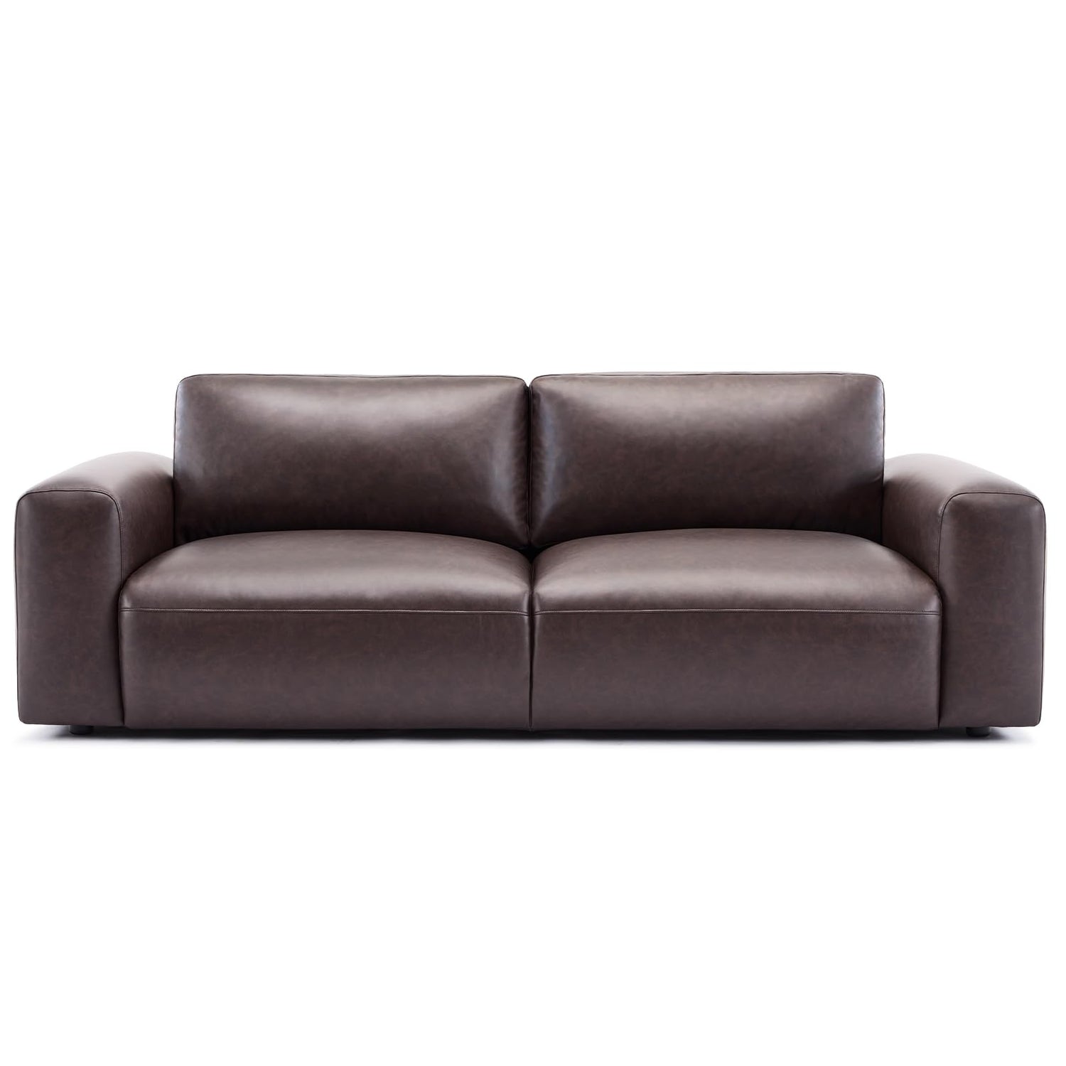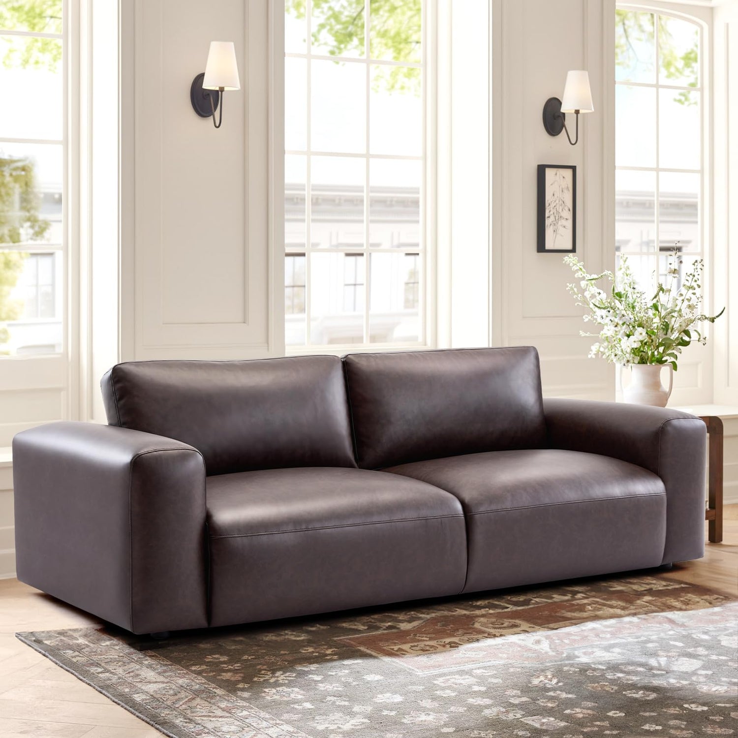COLAMY 95" Oversized PU Leather Sofa, Comfy Sofa Couch with Extra Deep Seats, Wide Arm, Down Filled 3-Seater Modern Sofa for Living Room, Apartment Lounge-Chocolate
