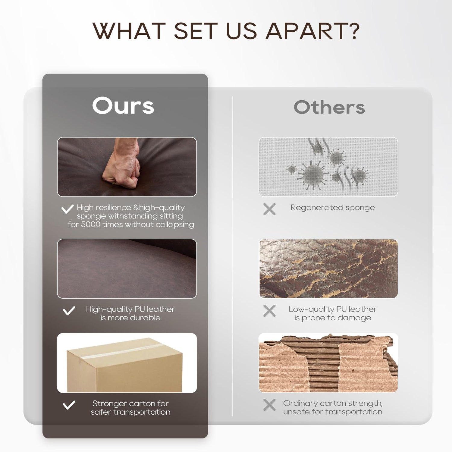 - ⏩PREMIUM PU Leather Material-Our leather sofa couch adopts premium top grade PU leather material, which is smooth, skin-friendly and adds a touch of luxury to this sofa. Compared with a fabric surface, it is also much easier to take care of. Once stained, just wipe it with a clean damp cloth. A piece of quality leather furniture will age and grow with you for years to come