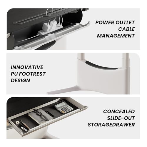 - Hidden Drawer & Organized Workspace: Unlike most standing desks, this one includes a large built-in drawer (25" wide) for easy storage of laptops, notebooks, and accessories. Combined with a rear cable tray + desktop grommet, it keeps your workstation clean, organized, and distraction-free.