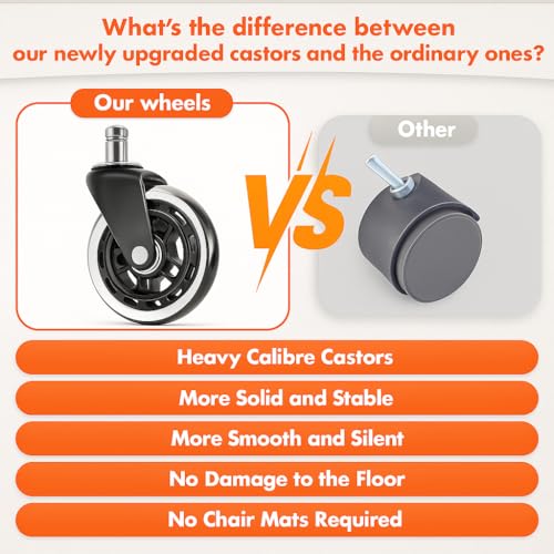 - SILENT MOBILITY & STABLE SUPPORT The upgraded large-caliber nylon casters glide smoothly and silently, protecting all floor types — no floor mat needed. Reinforced nylon legs and a 300lbs capacity frame guarantee years of reliable use.