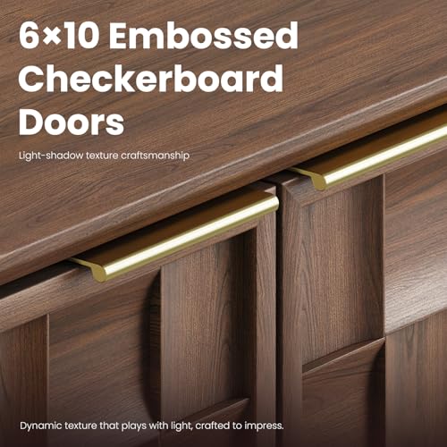 - 1. Fluted Design with Walnut Warmth Inspired by timeless architectural textures, this fluted sideboard cabinet features elegant vertical ridges and a rich walnut wood grain finish. Adds mid-century sophistication to any dining room, living space, or office credenza setup.