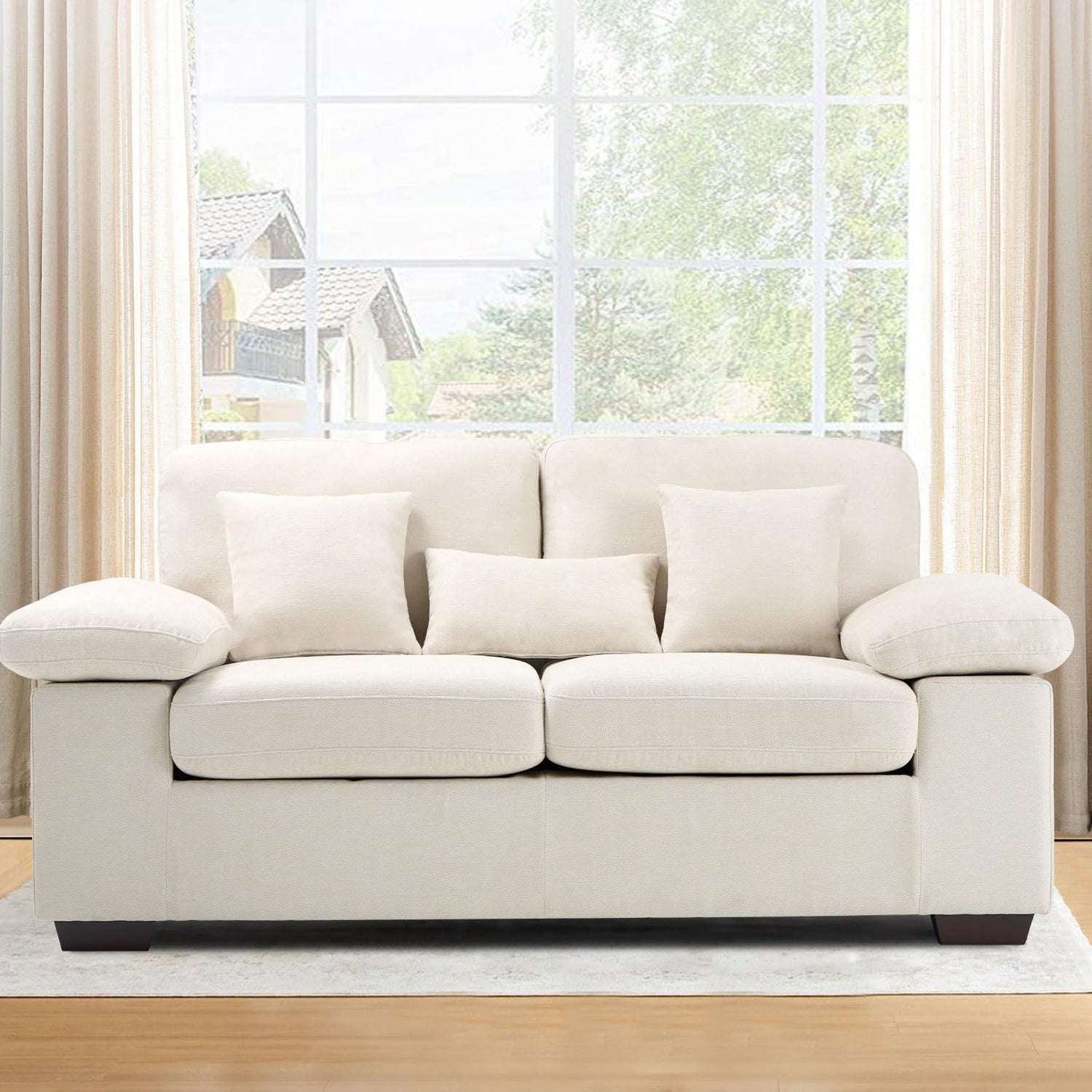 COLAMY Loveseat Sofa,73" Love Seat Couches Living Room Sofa with 3 Pillows, Upholstered Modern Chenille Seat Cushions,Beige
