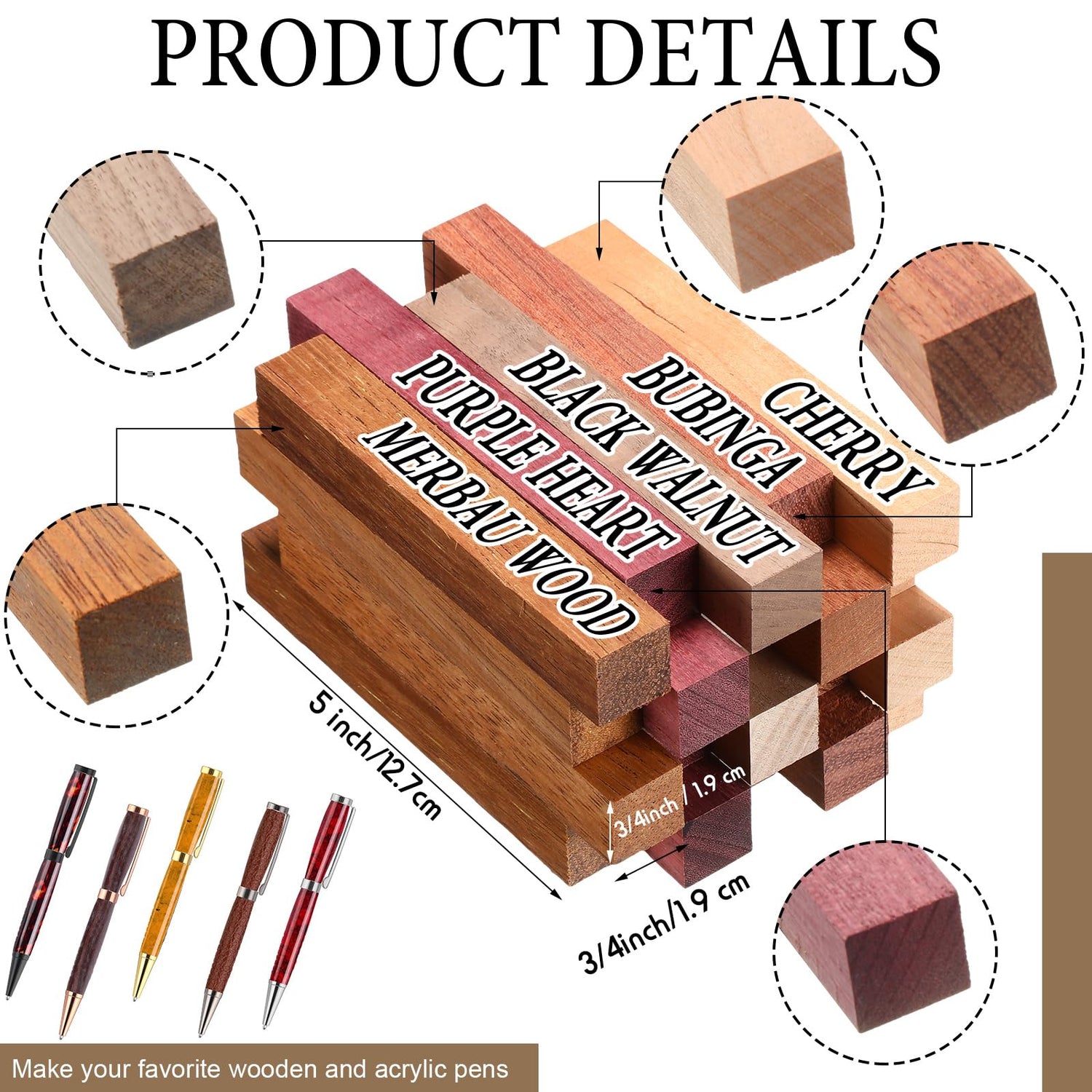 - Abundance in Quantity: the package includes 15 sets of pen making starter kits, including 15 sets pen kits in 5 colors (imitation gold, rose gold, bright chrome, gun black and matte black), 3 sets for each color, and comes with 15 pieces hardwood turning blanks in 5 styles (bubinga, purple heart, black walnut, cherry and merbau wood), offers an abundant supply for both enthusiasts and beginners, unitizing the craft of pen crafting