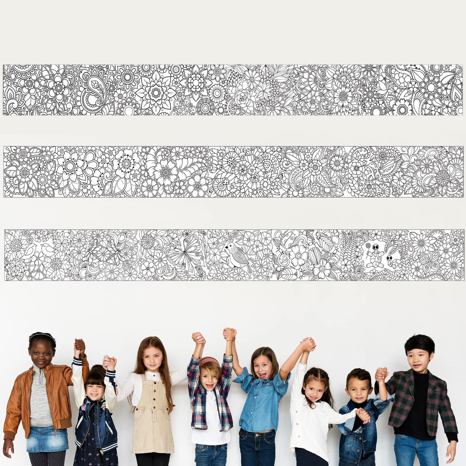 Colarr 3 Pack Giant Mandalas Coloring Posters 118 x 11.8 in Paper Jumbo Mandala Coloring Sheet Page Large Spring Flower Animal Drawing Banner for Kid Adult Home Classroom Wall Floor Art Craft Activity