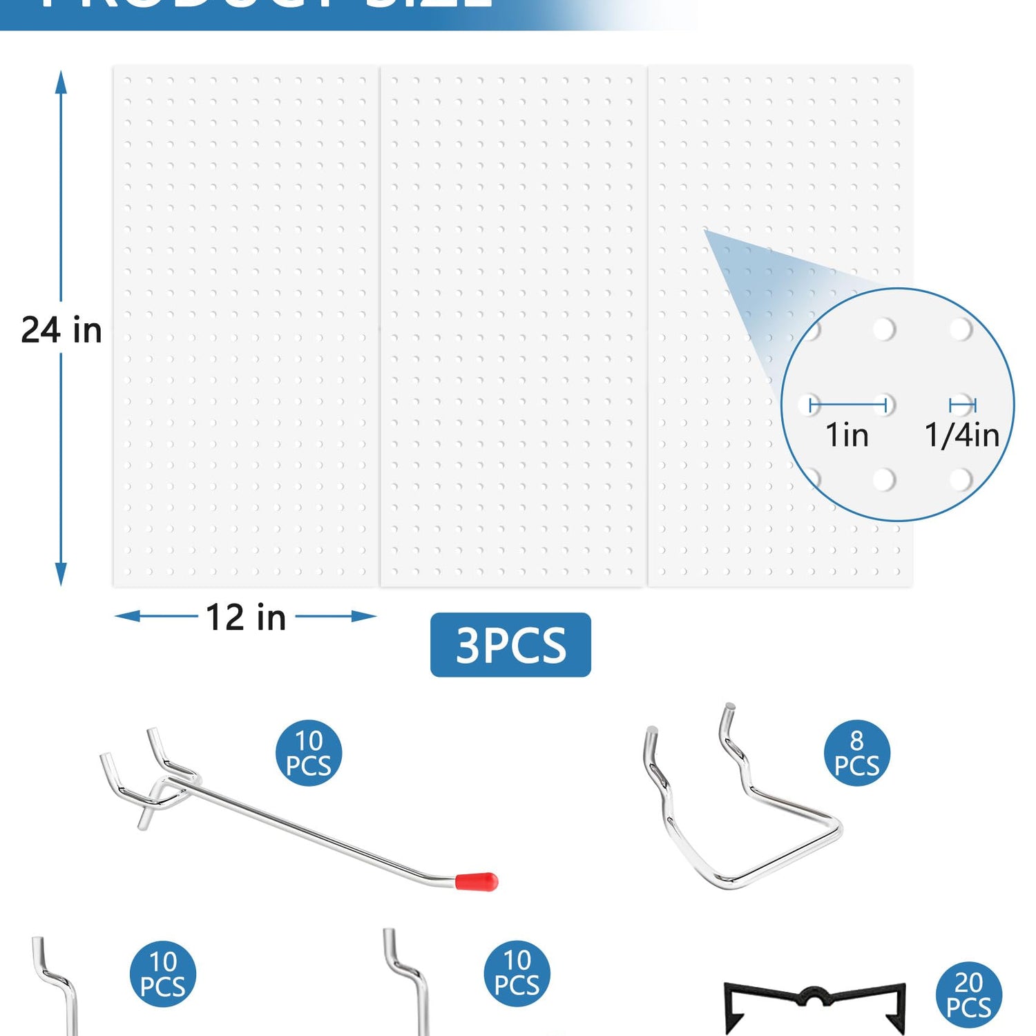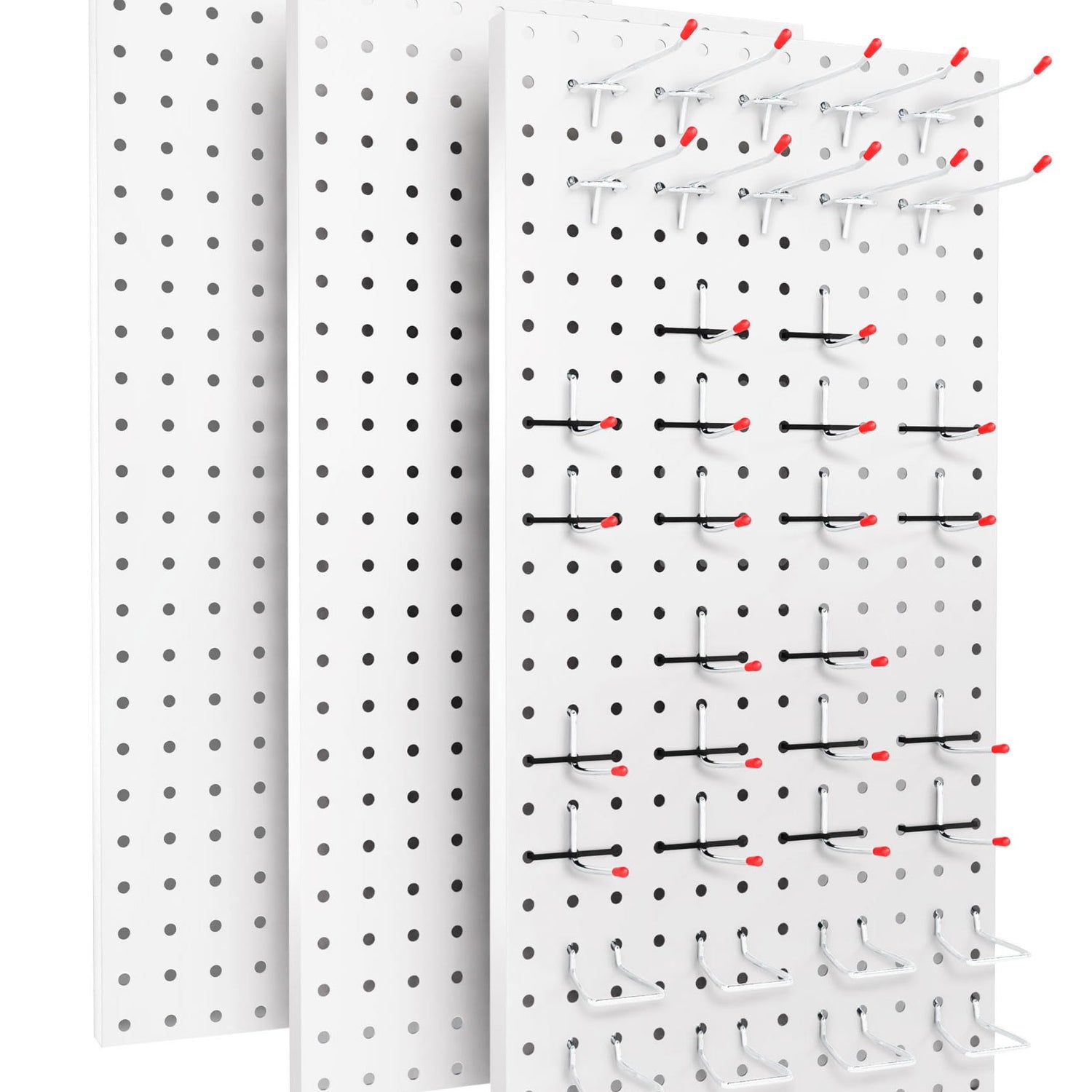 - Simple Tool Free Assembly and Universal Hook Compatibility:Setting up your organized space is quick and easy. The panels feature a user-friendly connection system. They are designed to fit most standard-sized hooks on the market (58 hooks included!), allowing you to easily expand or customize your setup with affordable and widely available accessories.