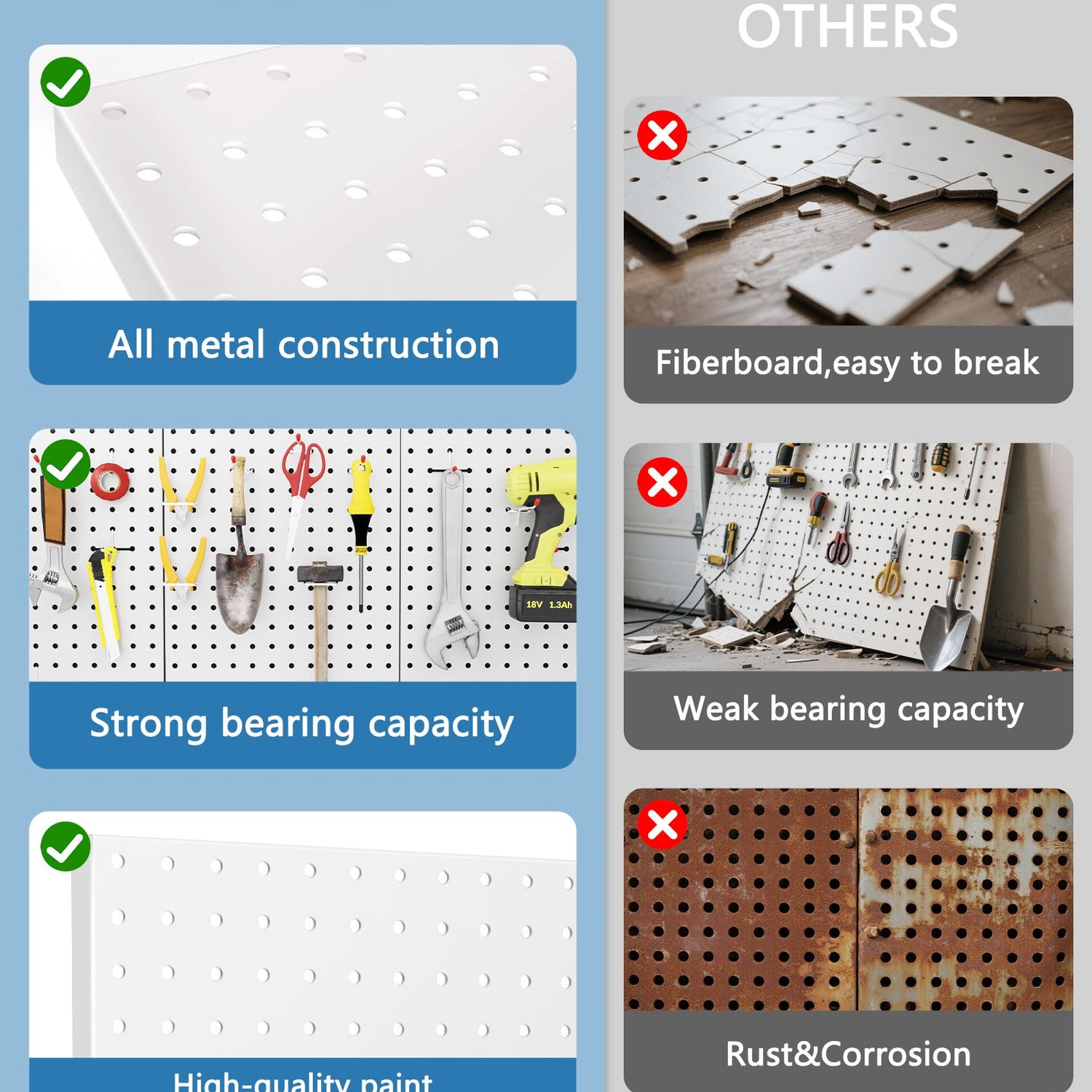 - Ultimate Durability and Stylish Design:Built from high quality metal, our metal pegboard panels are far more durable and sturdy than typical fiberboard options. They resist warping, cracking, and can hold heavier items with confidence, ensuring your wall organizer remains reliable for years to come.