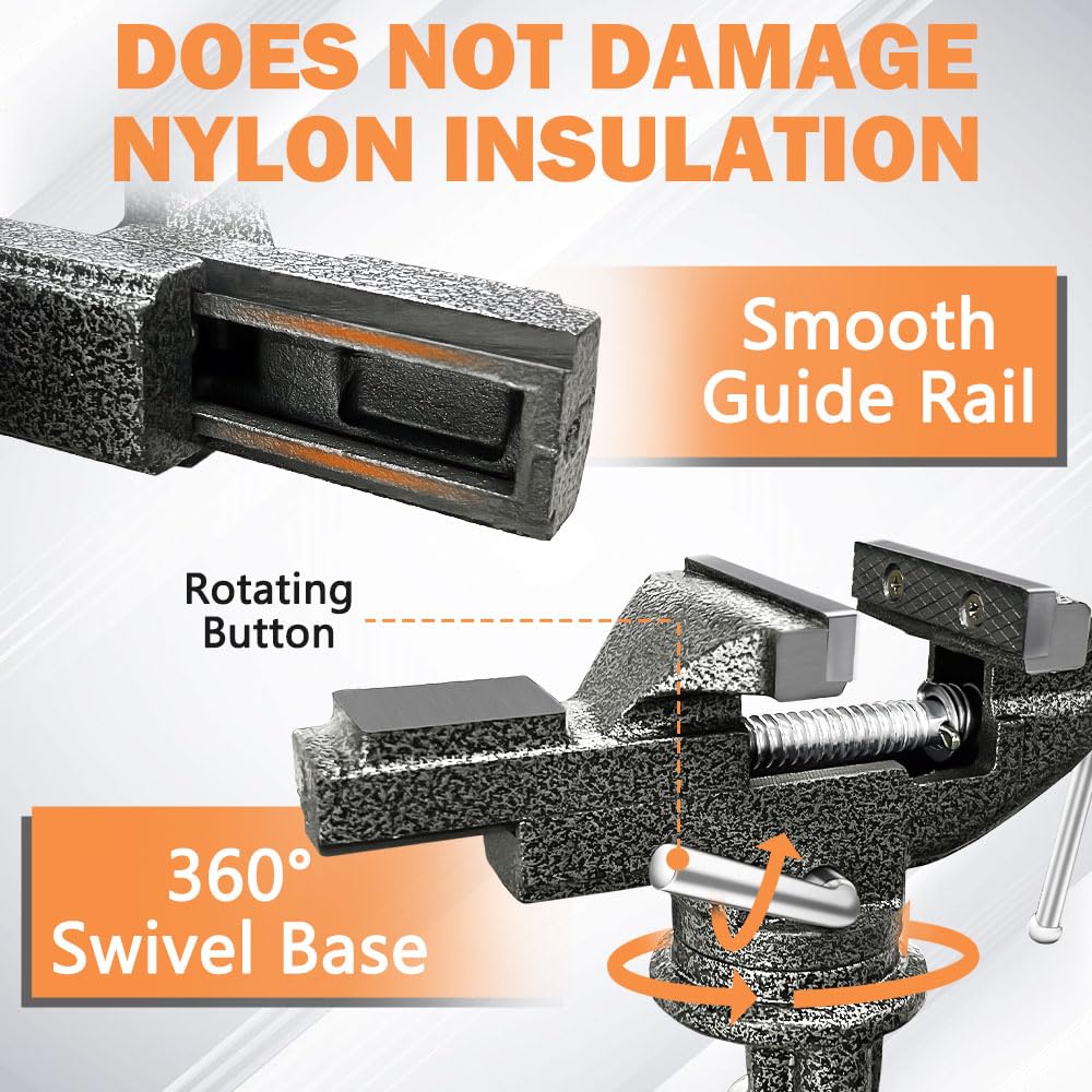 - 【360° Versatile Swivel】Built with a 360° degree swivel base, this work bench vise is perfect for use with a variety of clamping angles for versatility.