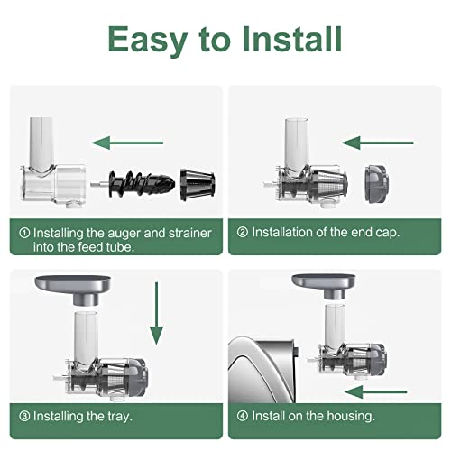 - Safe & Quiet Operation: Our cold press juicer equipped with intelligent protection chips, making it stop automatically for every 20 minutes' operation. 150W motor- less than 60 decibels, small mouth design to put ingredients that prevent your hands getting injured and ensure the ingredients are stoned and peeled for healthier juice. Just enjoying a quiet and safe environment and healthy life when making juice.