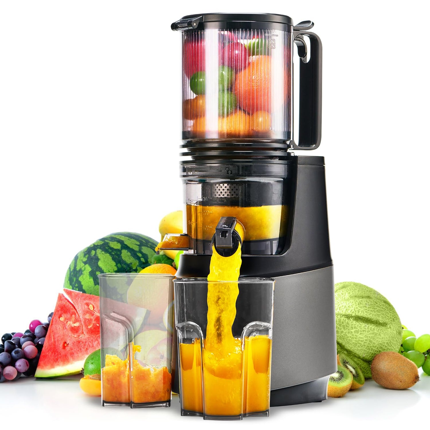 Cold Press Juicer,Slow Masticating Juicer Machines with 5.3" Large Feed Chute for Most Fruits and Vegetables,Easy to Clean Lemon Orange Juicer with 250W Motor and High Juice Yield,Deep Grey