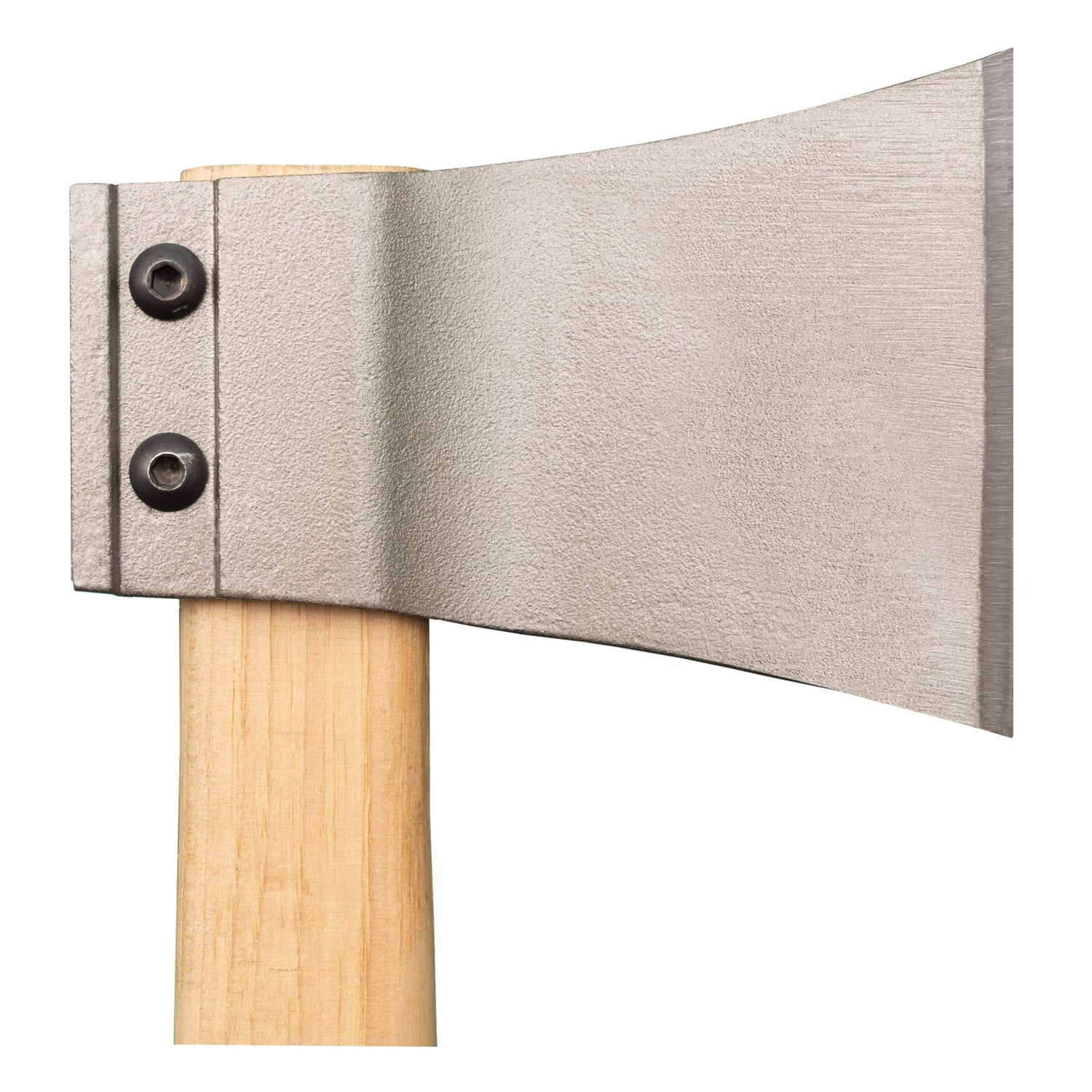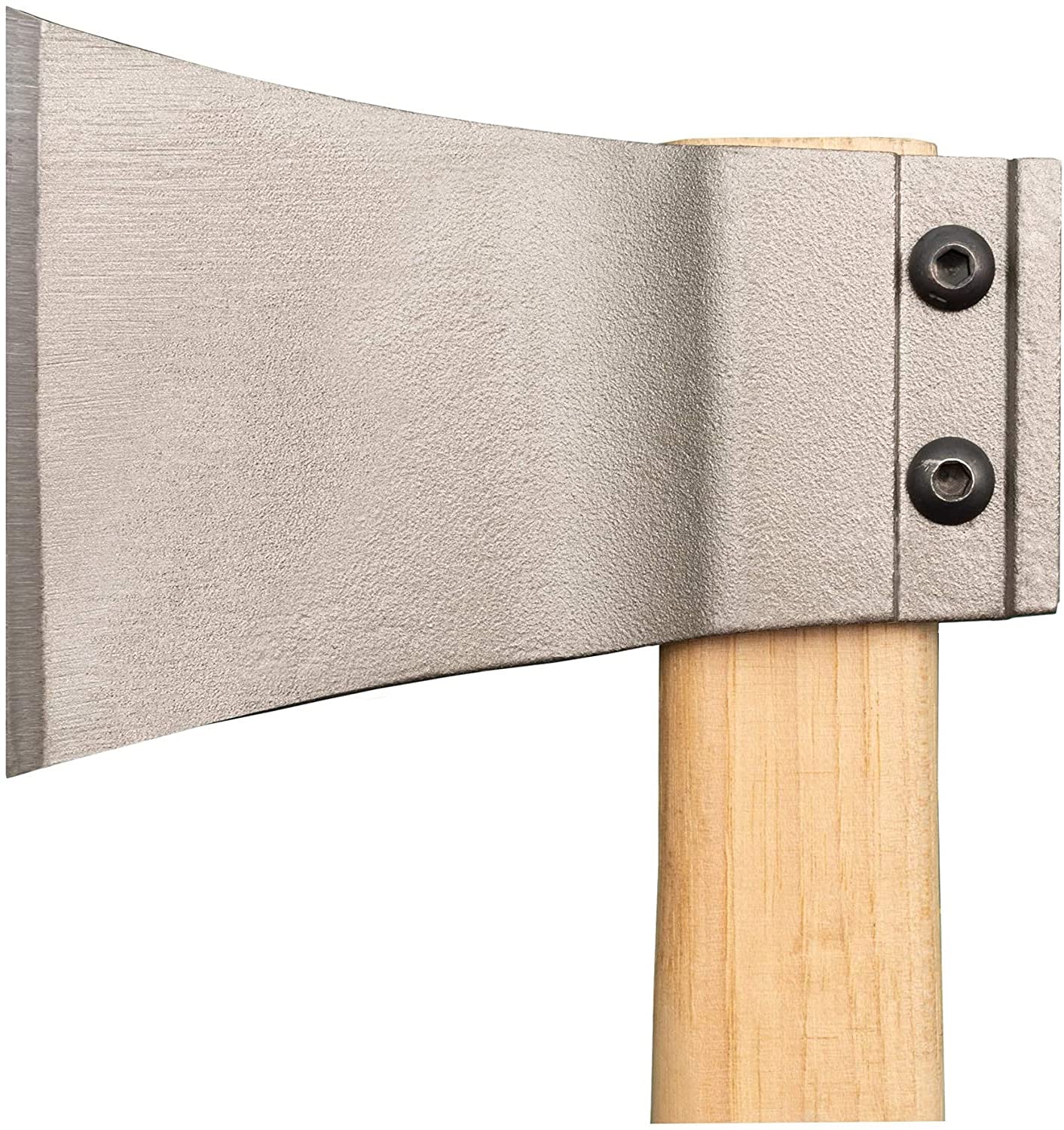 Details: Patent pending locking mechanism makes handle changes easy: all you have to do is to loosen the bolts, slip out the worn handle and exchange it for a new one and re-tighten the boltsBlade made of drop forged 1055 Carbon steelTough and durable American Hickory wood handleOverall length: 16 inchesHead Weight: 21 ounces; Overall Weight: 31.5 ounces