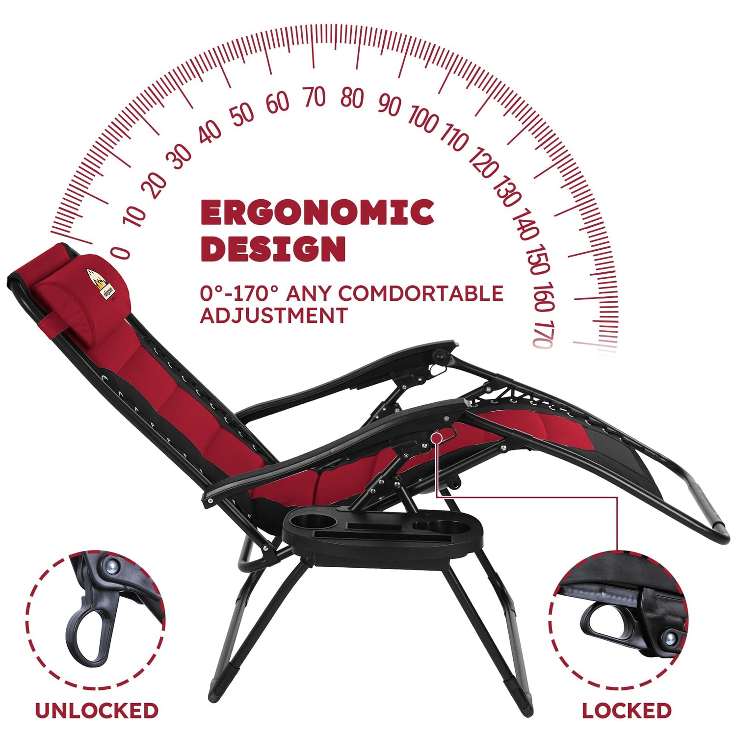 Colegence Oversized Padded Zero Gravity Lounge Chair, Foldable Patio Anti Gravity Reclining Chairs Folding Lawn Recliner with Cup Holder for Yard, Camping, Outdoor, Support 350 LBS, Burgundy