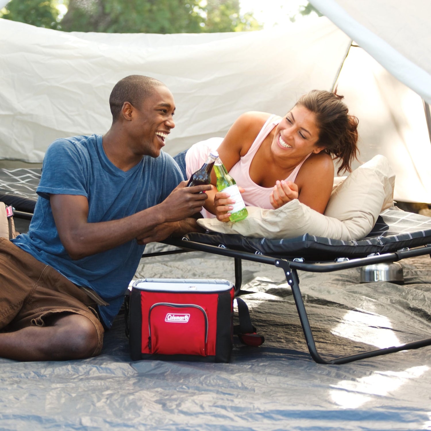 Details: The Coleman ComfortSmart Glamping Cot provides superior comfort wherever your adventure leads - from camping to a beach getaway. Featuring a ComfortSmart coil suspension system and a thick foam mattress pad, it offers unrivalled support. Its strong steel frame can carry up to 300 pounds and can fit campers up to 6 feet 6 inches. Conveniently foldable, it fits into most car trunks for easy transport to and from your backyard, sports event, festival, or tailgate. Included is a 1-year limited warranty. The combo also includes a leak-proof air mattress that maintains inflation all night long, thanks to its advanced coil construction. The bonus pull-out side tables, complete with cup holders, are perfect for keeping essentials like a flashlight or water bottle within accessibility.