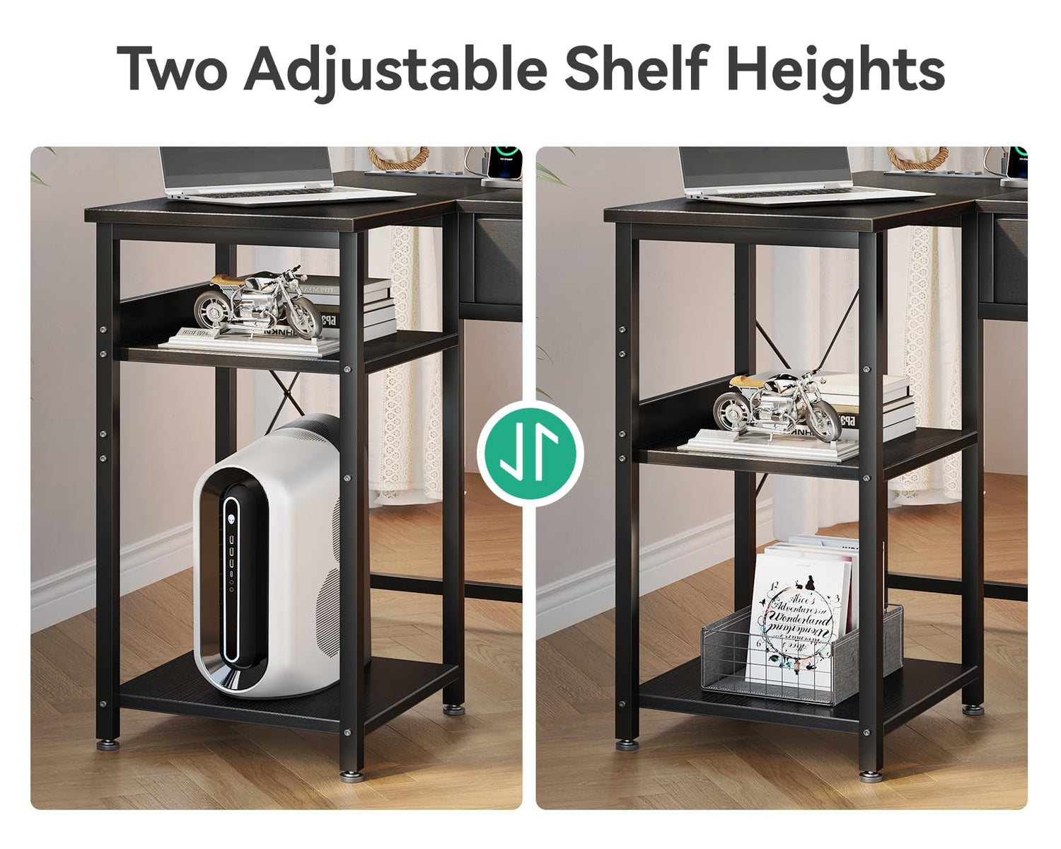 - 【Double-tier Storage Shelves】The corner desk with storage offers ample storage space, providing you with a cleaner desktop. The storage shelves can serve as a two-tiered bookshelf or organizer, meeting your various storage needs at home or in the office. Having this work-from-home desk will enhance your quality of life.