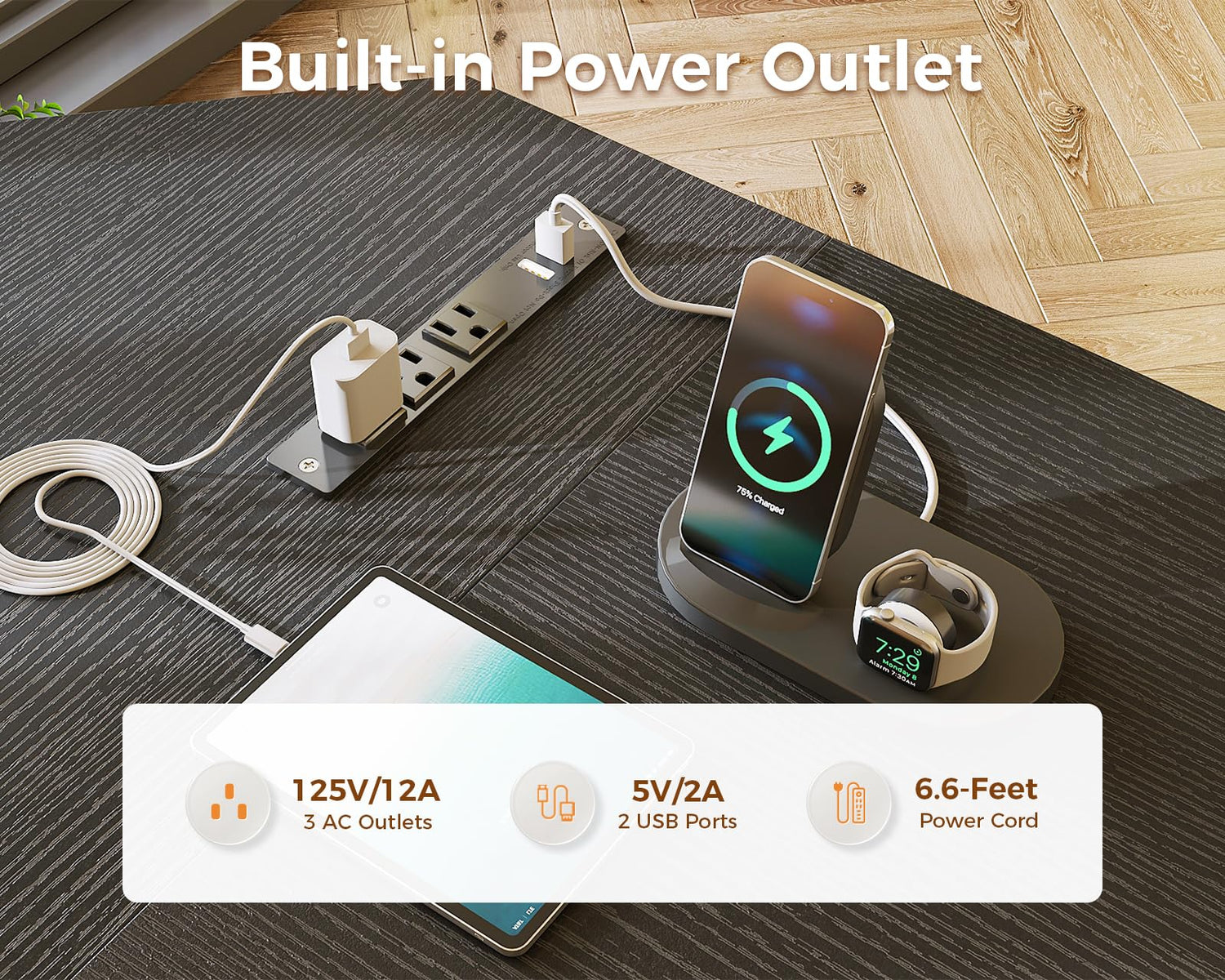 - 【Built-in Power Outlet】The L Shaped Computer Desk comes with a built-in power outlet, provides 3 AC outlets and 2 USB ports. With this home office furniture, now you can charge multiple devices easily and safely!