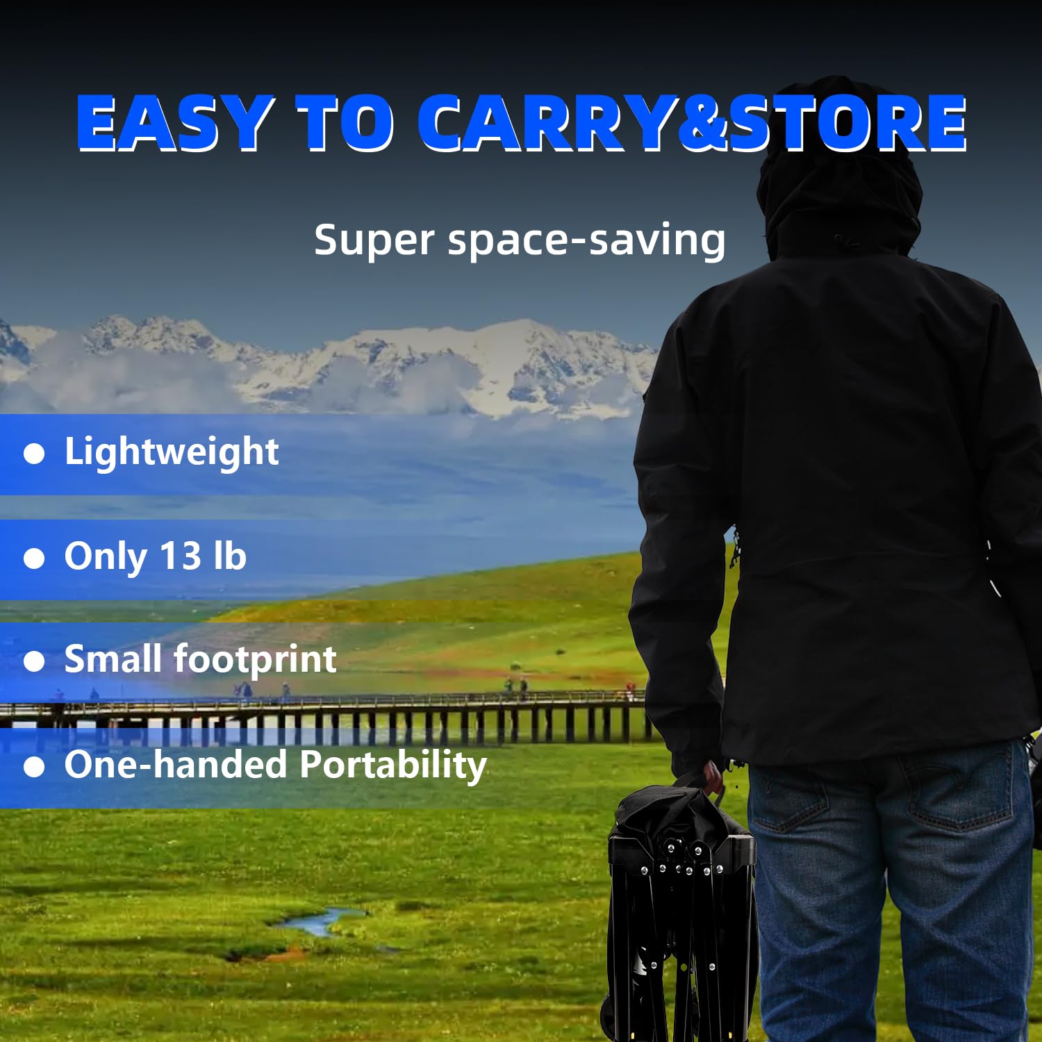 - 🌟EXTRA LARGE CAPACITY - DURABLE COLLAPSIBLE WAGON: The collapsible wagon has an expansion size of 32"x 18"x 37.2" (L*W*H) and load up to 220LBS, which can carry all the goods your family needs for outdoor camping. The wagon body is made of lightweight aluminum alloy, compared to other products, our product is lightweight and strong, with anti-corrosion coating on the surface, which can prevent the body from rusting. Waterproof fabric, waterproof and durable, tear resistant, removable and washable.