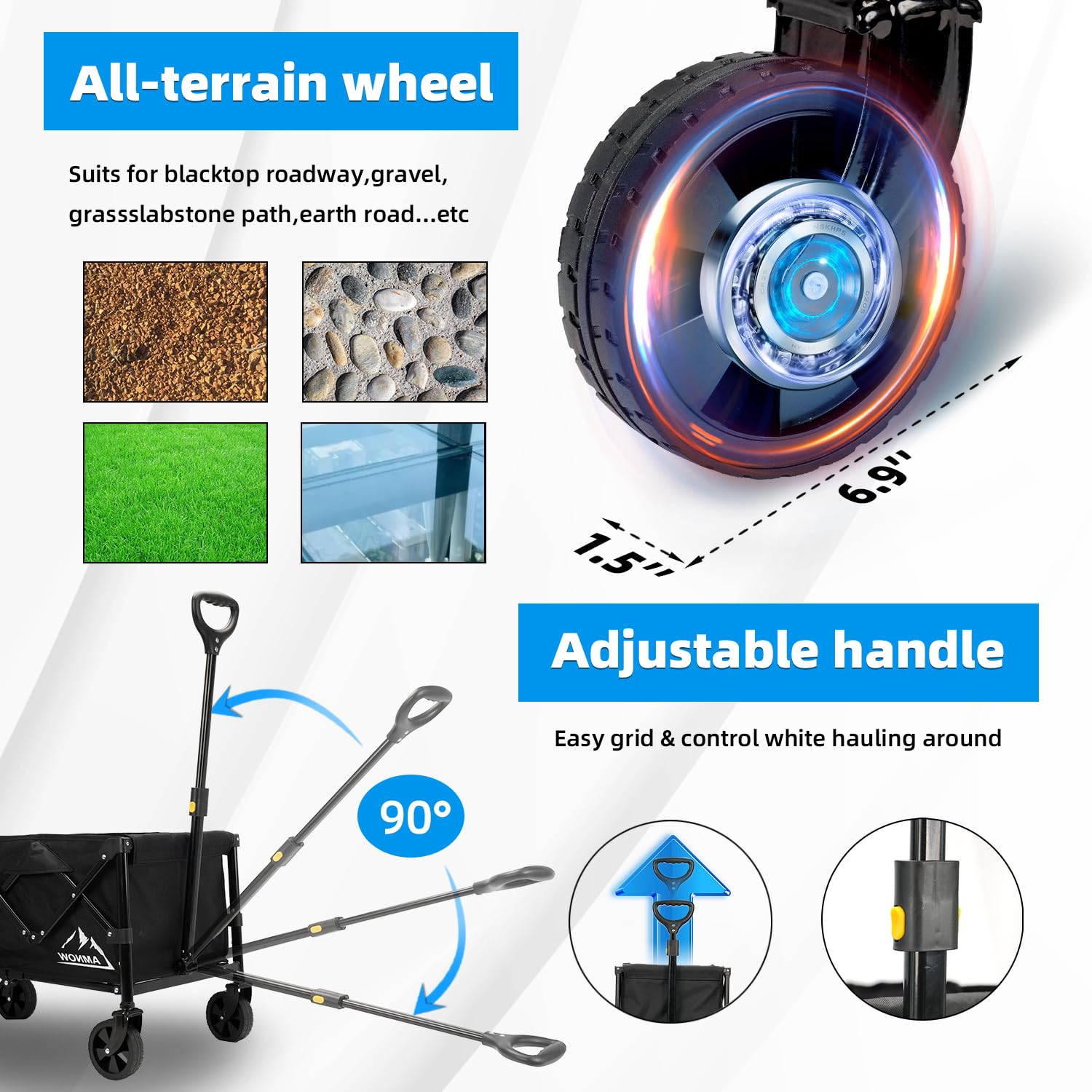 - 🌟REMOVABLE - All TERRAIN WHEELS: The wheels are made of high quality Rubber material, suitable for any road surface, with built-in rolling bearings - easy to pull, even with very little force you can easily pull the wagon, all-terrain wheels, whether on the beach, rainforests, gravel roads can ensure that you are safe and comfortable to pass.