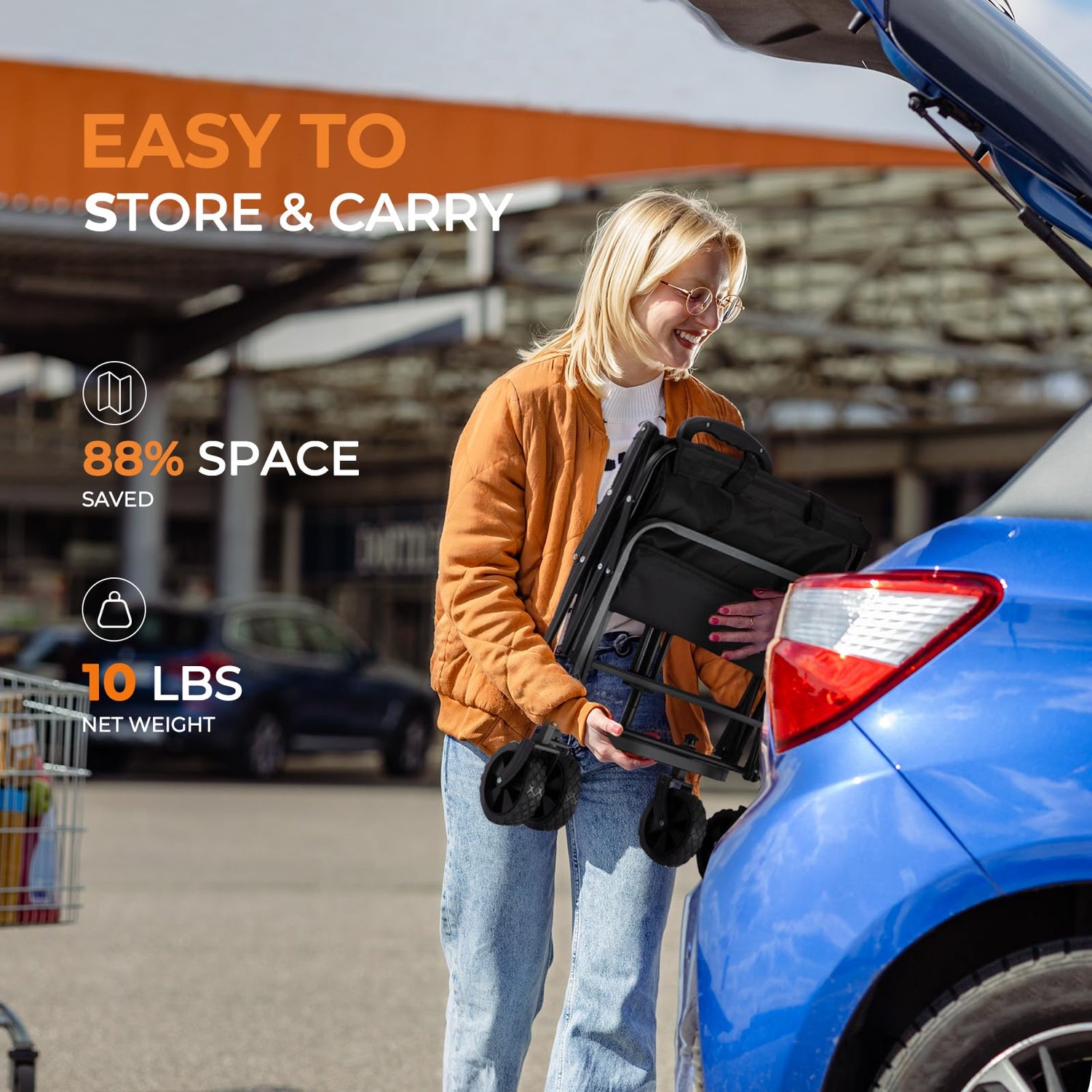 - COMPACT & EASY TO CARRY: Weighing just 10.5 lbs, our collapsible wagon is designed for ultimate portability, allowing for effortless one-handed carrying. When folded, it measures a compact 18.1x5.1x25.6 inches, making it space-saving and easy to store in your car trunk or closet. Unfolding and folding the wagons carts foldable takes only seconds, ensuring a smooth and convenient experience whenever you're on the move