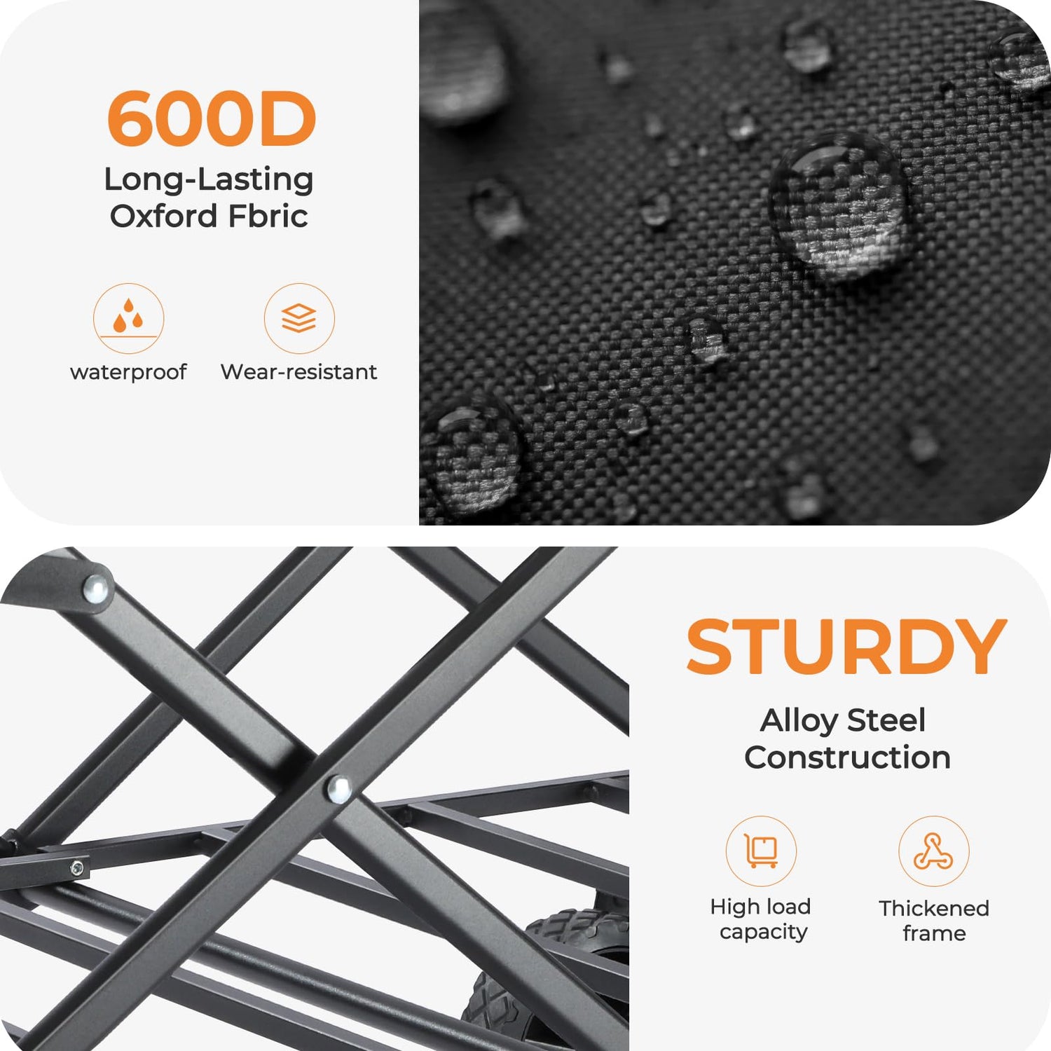 - HEAVY-DUTY & DURABLE: Crafted with a premium alloy steel frame, this collapsible wagon supports up to 220 lbs, making it ideal for carrying a variety of items with ease. The 600D Oxford fabric is tear-resistant, waterproof, and wear-resistant, ensuring long-lasting durability. Plus, the fabric is removable and easy to clean, simplifying maintenance and keeping your wagon for groceries looking fresh after every use
