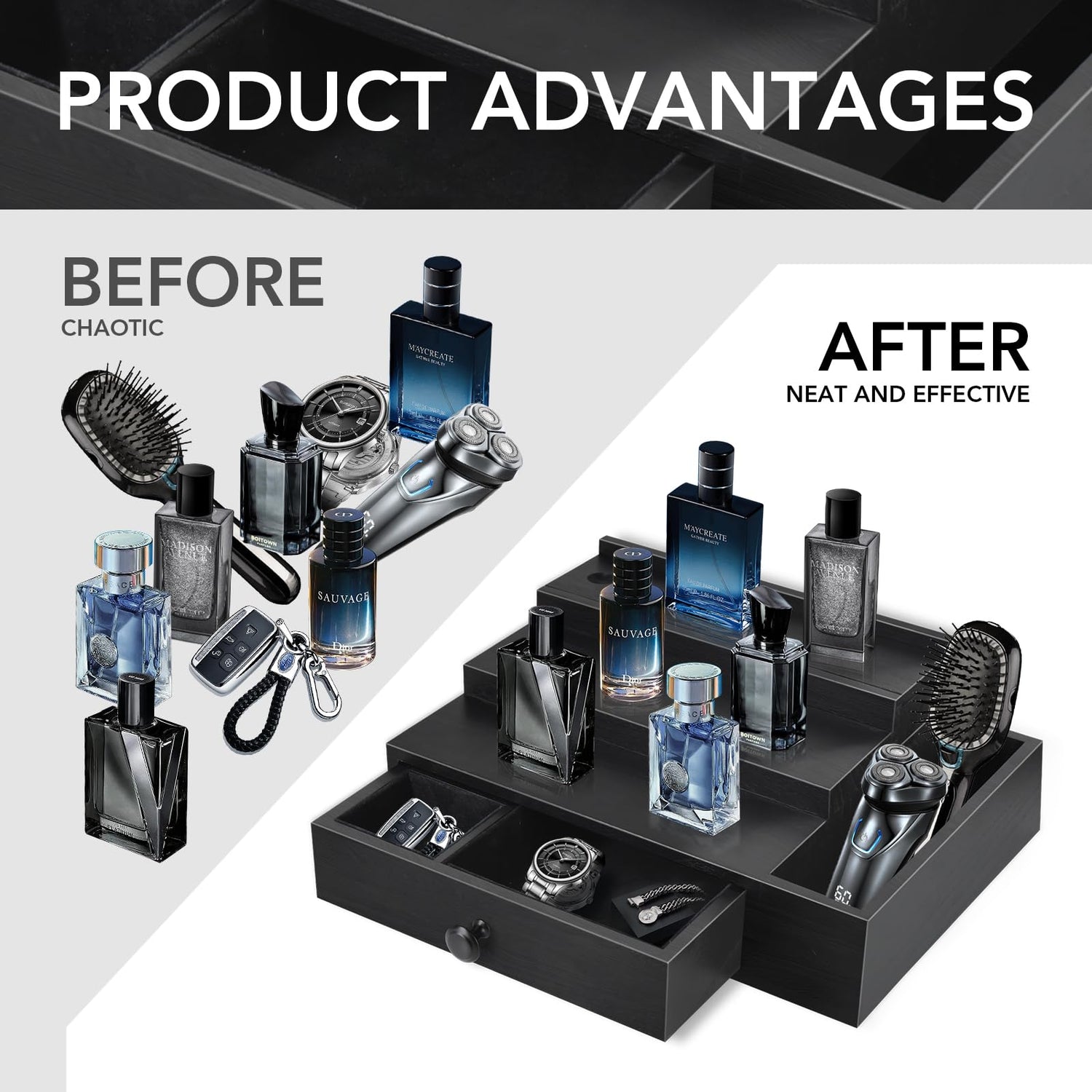- 【Unique Gifts for Classy Man】 Surprise the special man in your life with this practical and stylish 3 tier cologne stand. This wooden fragrance organizer makes an excellent gift for fragrance enthusiasts or anyone who appreciates a well-organized space. Our cologne display shelf can be used in bedrooms, showers, night stand, dresser and more. A unique gift for the man who is elegant, appreciates beauty and has taste. The perfect gift for birthdays, Valentine's Day, Father's Day and housewarming.
