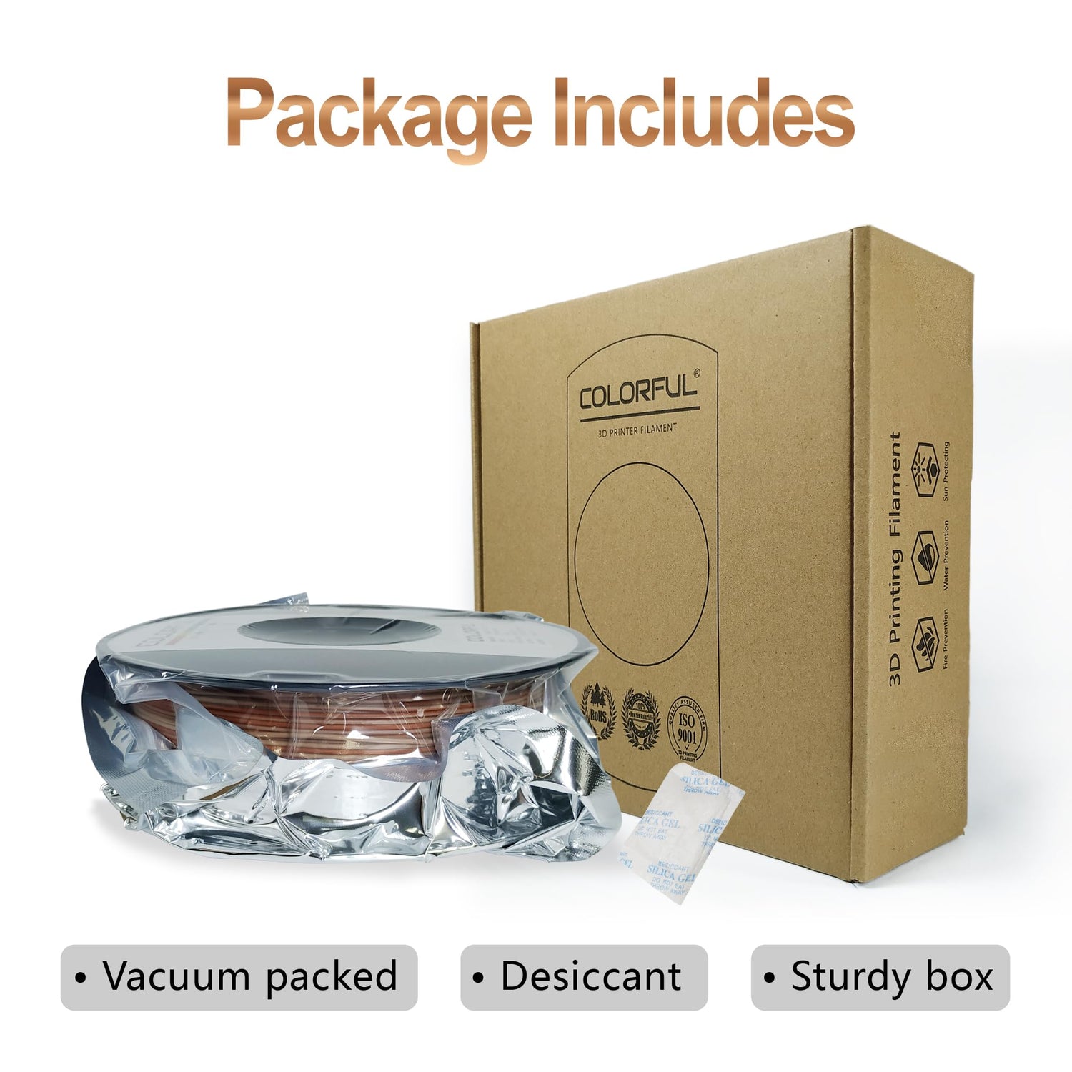 - 【Vacuum Sealed Packaged】Double sides fix hole on the spool can prevent tangled, Wood filament tightly sealed in the vacuum aluminum foil bag with an adequately sized desiccant packet to prevent dust and dampness, Aluminum Foil can anti sunlight, transparent side can see the exactly product clearly, sealable design bag makes COLORFUL PLA filament can storage for longer time and easy to use.
