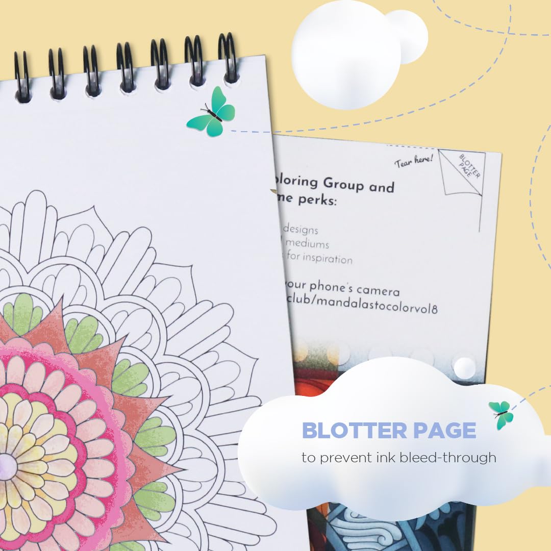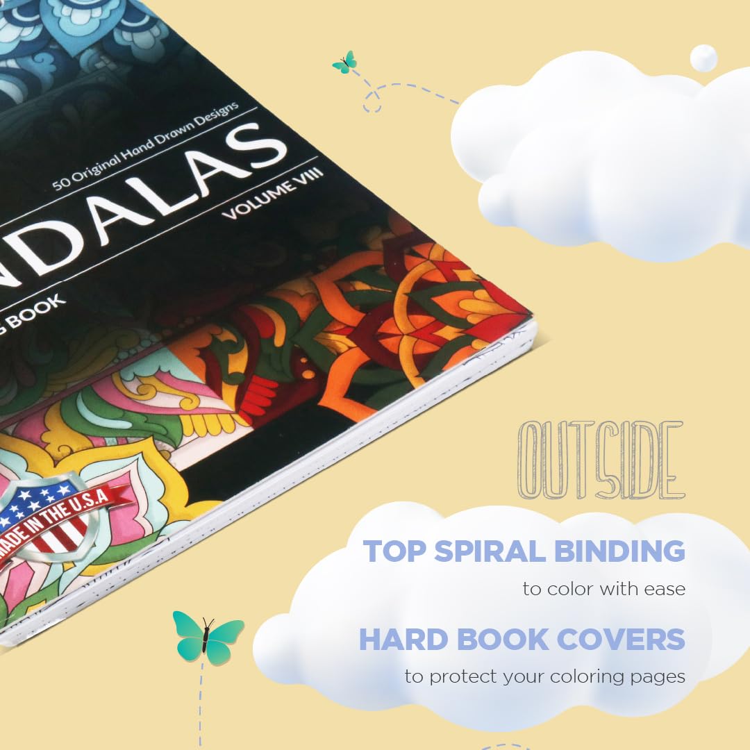 ColorIt Mandalas to Color, Volume VIII Adult Coloring Book 50 Floral and Geometric Mandala Patterns and Designs, Spiral Binding, USA Printed, Lay Flat Hardback Book Cover, Ink Blotter