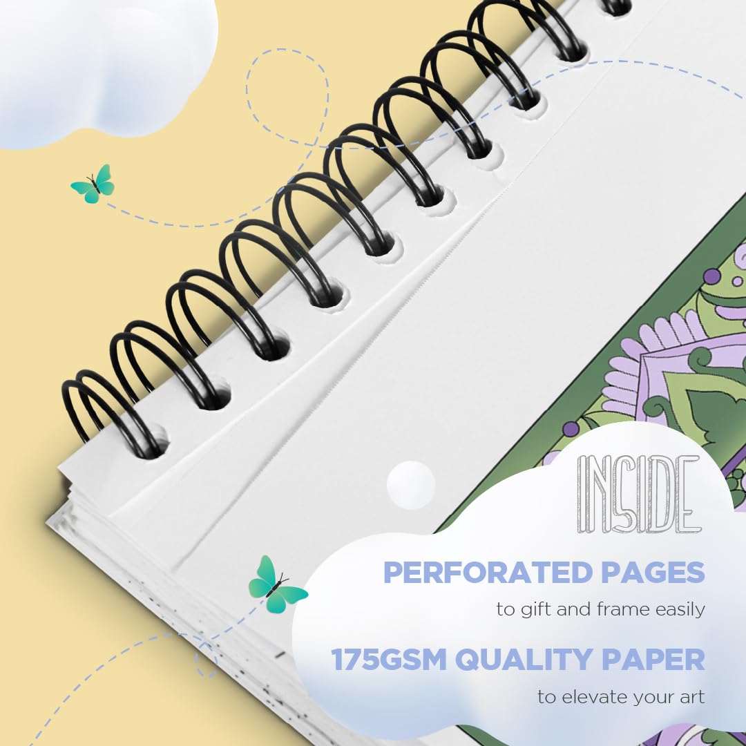 - Reset and Refresh. Unwind and relax in the comfort of your own space. The spiral binding on our mandala adult coloring book gives both right and left-handed colorists an easy flip-through.
