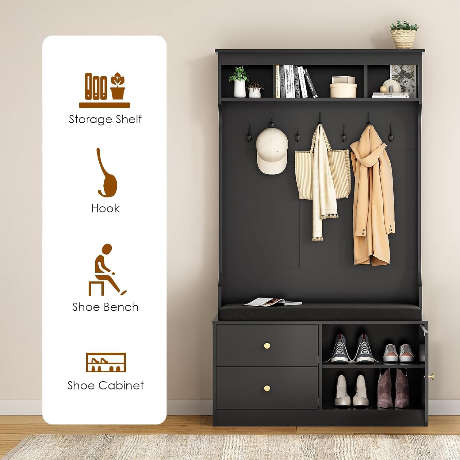 - 【Emphasizing Safety】 To enhance the stability of the entryway hall tree with bench, anti-toppling devices are included in the package.We strive to minimize any risks for you!