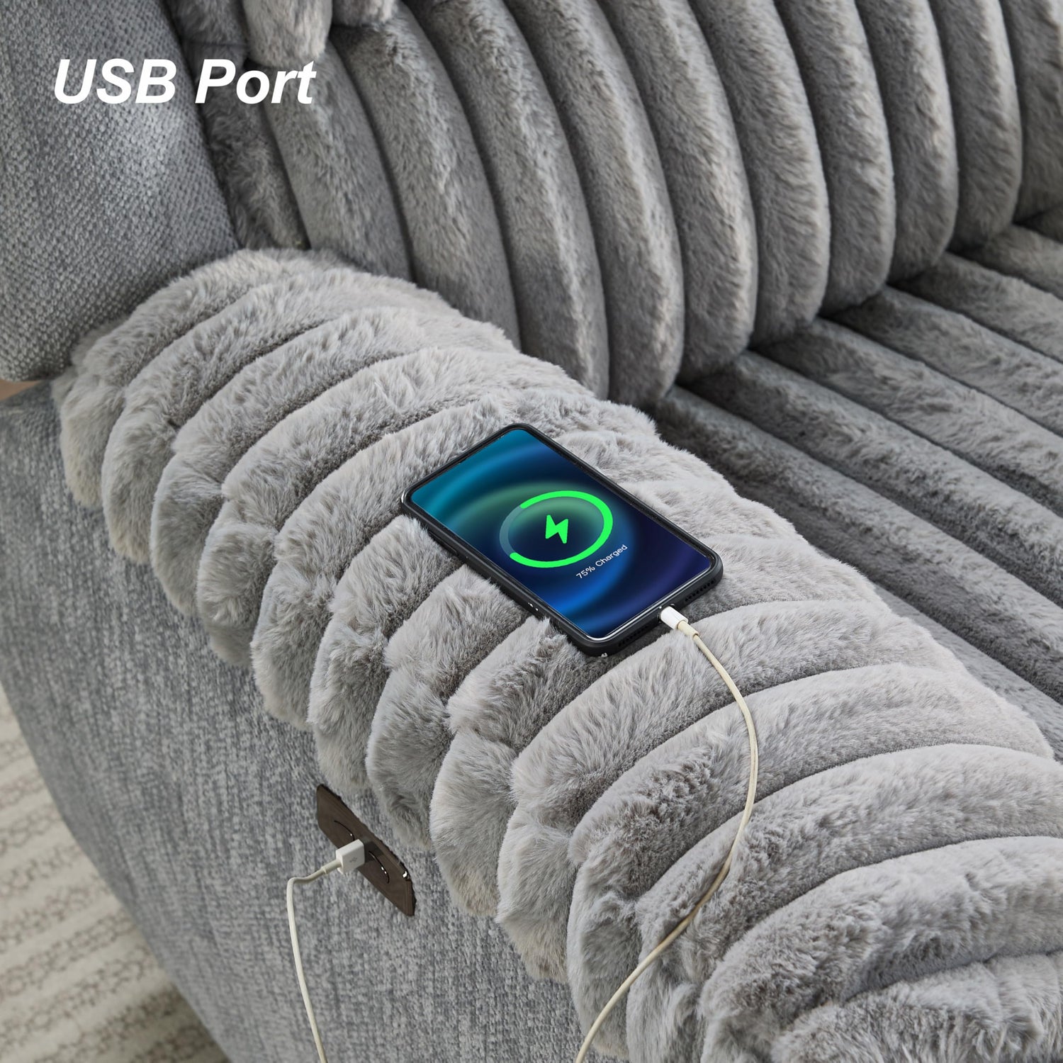Comfort Stretch Grey Power Recliner Chairs for Living Room Faux Fur Electric Recliners Chair with USB Port Soft Fabric Overstuffed Single Reclining Chair Theater Seating