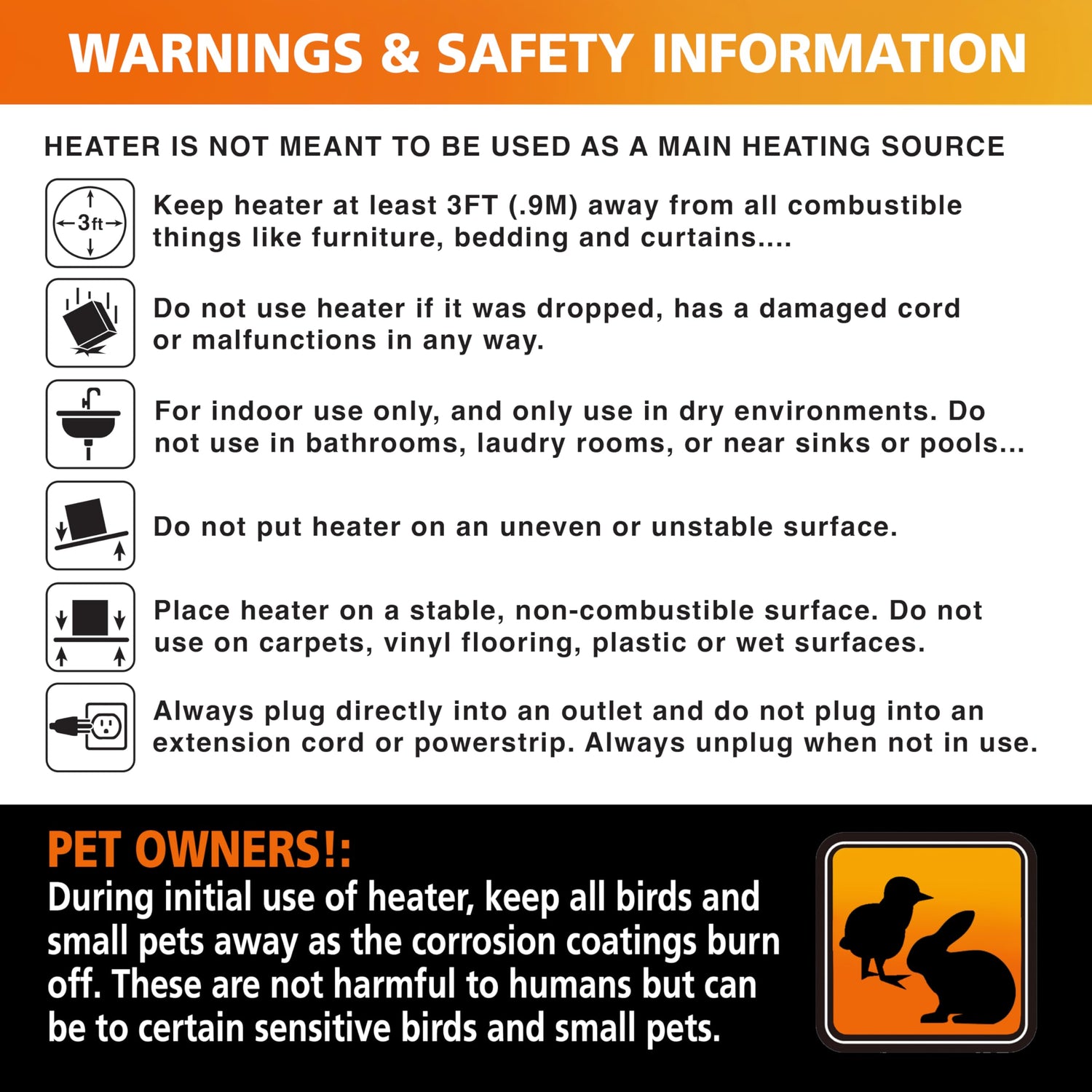 - ENHANCED SAFETY FEATURES: The radiant heater is equipped with intelligent safety features to provide you with peace of mind. A sturdy metal safety grill effectively prevents the bulbs from coming into contact with other items, ensuring safe operation. Additionally, an integrated sensor automatically shuts off the unit if it detects overheating, protecting against potential hazards and promoting a safe environment.