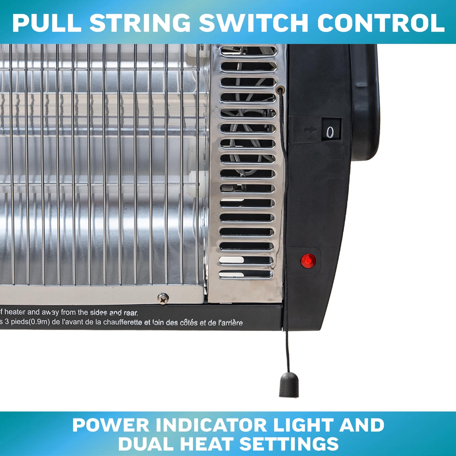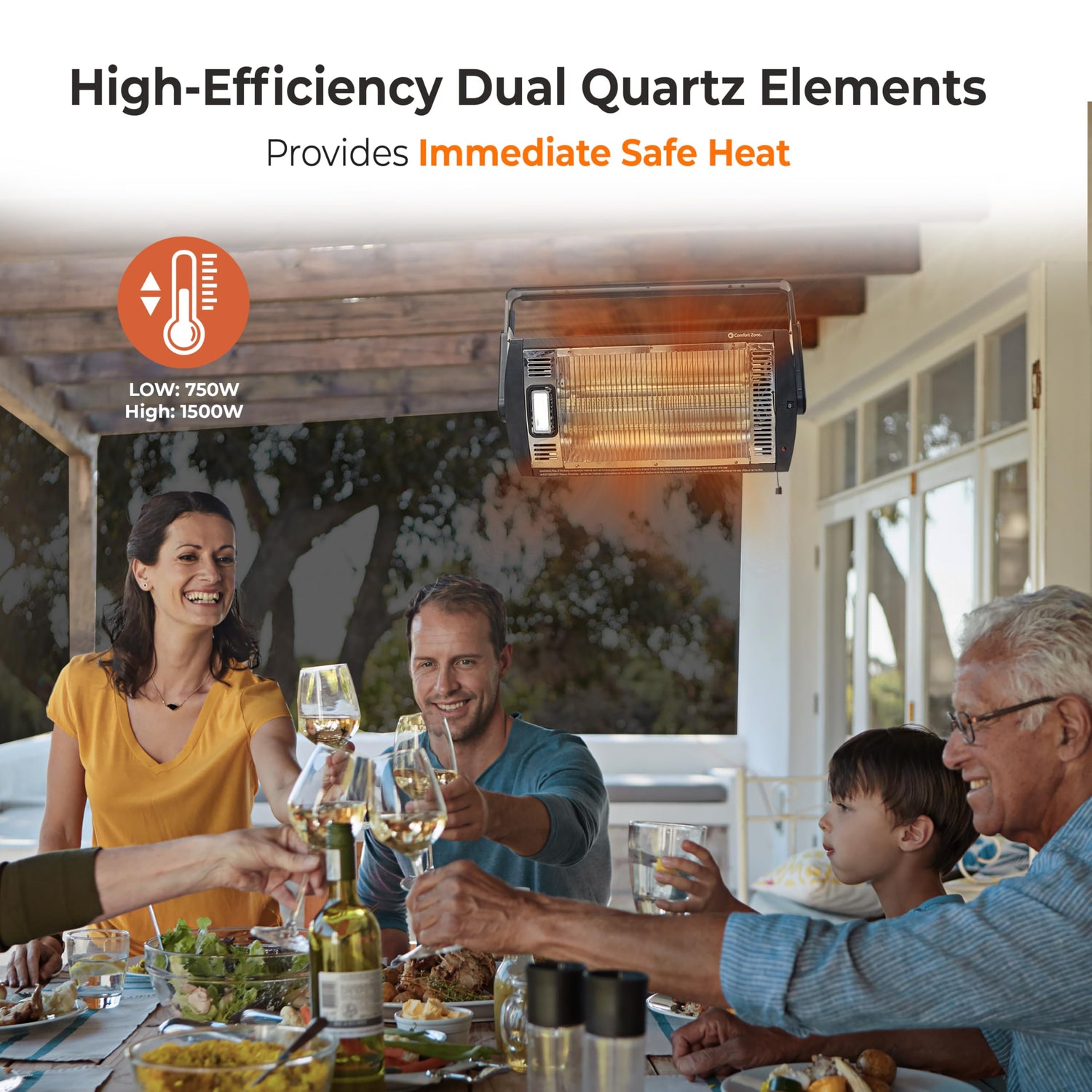 - EFFICIENT RADIANT HEATING: This radiant quartz heater utilizes two high-quality quartz bulbs to emit heat that is similar to the warmth of the sun. The radiant heat is directed towards nearby objects, delivering gentle and efficient warmth to living spaces, workshops, and garages. With its effective heating mechanism, this heater is an ideal choice for creating a comfortable environment. Voltage: 120.0 volts.