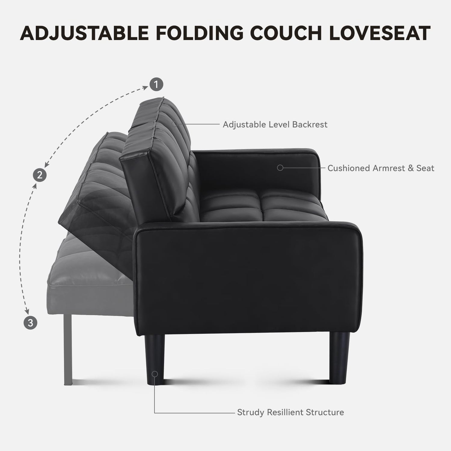 - 【Versatile Futon Sofa Bed】With its multi-angle adjustable backrest design,it can easily convert from a sofa during the day to a futon bed at night.This Futon couch is the perfect addition to your living room,bedroom,office,or apartment