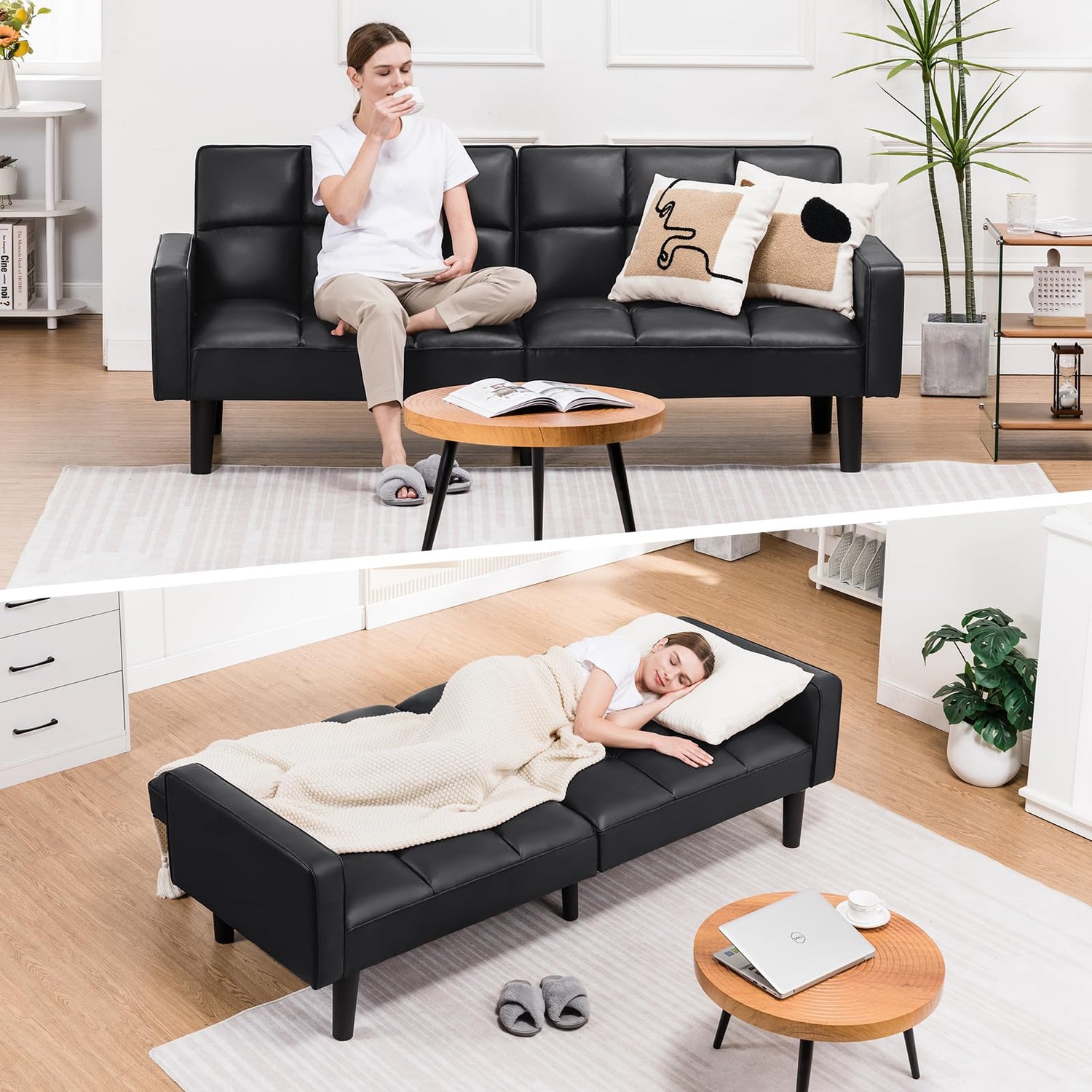 - 【Large Space - Restful Sleep】Stretch out and relax with this futon sleeper sofa,unfolding to a generous 76"x 36.2"for ultimate comfort.Whether hosting overnight guests or enjoying a cozy nap,its spacious design transforms any moment into pure relaxation