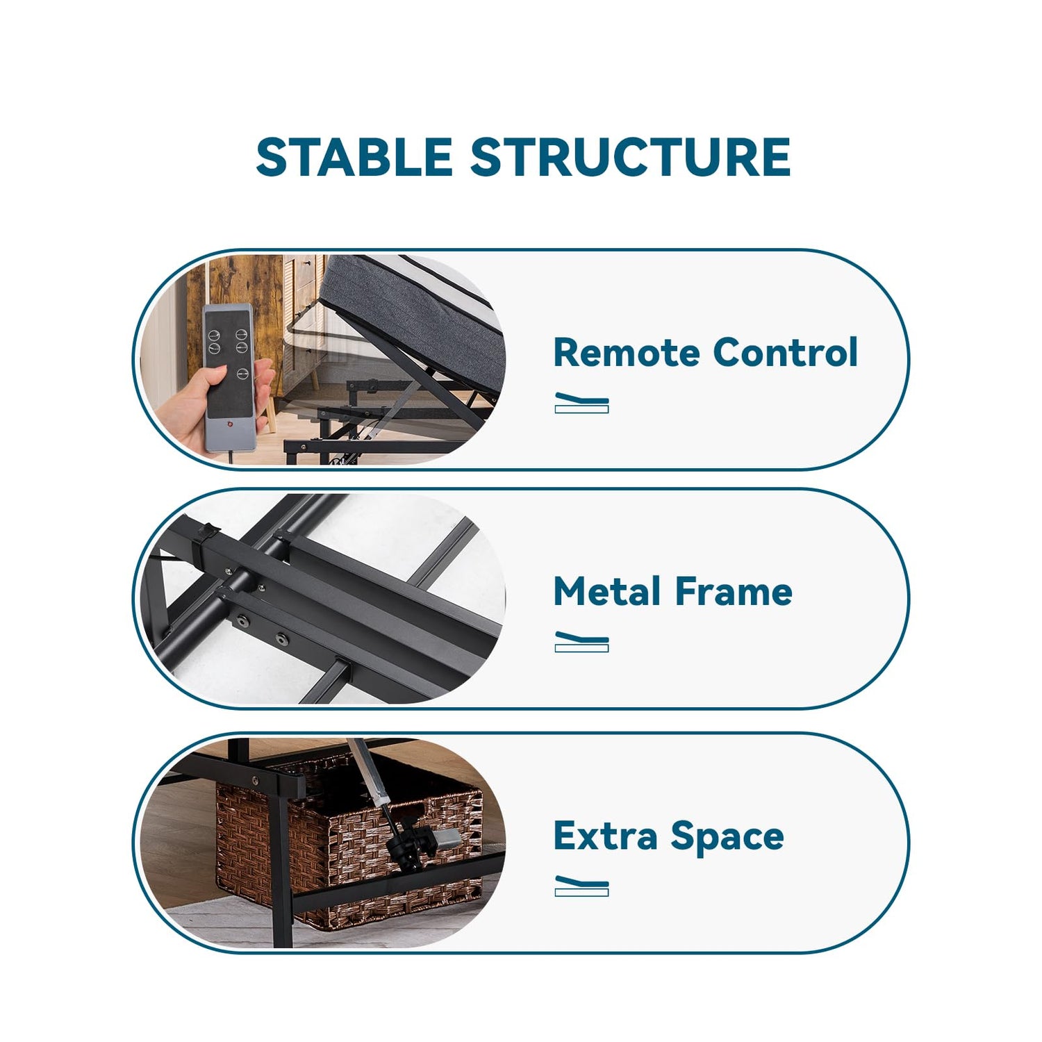 - QUALITY IN DETAILS- With limited noise we make sure this convertible bed base motor is as quiet as possible and does not disturb the quality of your sleep. The materials are made from durable metal that can withstand heavy weights making it as a suitable bedroom furniture. It also comes with a thin bed cover that serve as a first base for your mattresses