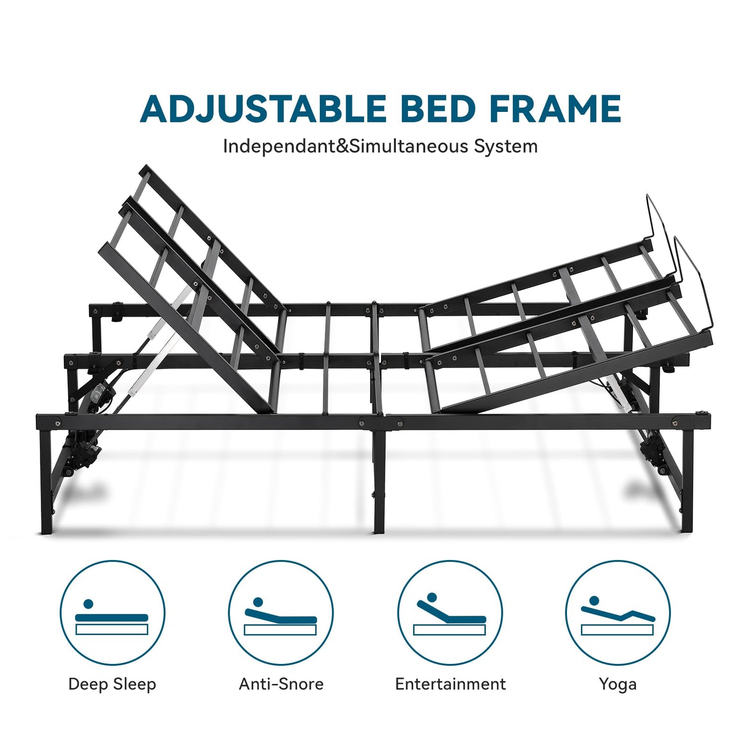- ELEVATED COMFORT- An upgraded adjustable base is the secret to an upgraded sleep experience. Controlling the head and foot incline can help increase the level of comfort for you, this king bed frame will give you an overall enhanced sleep experience. The head and foot area can recline and incline to your desired angle helping you with any back problems, helps reduce snoring and acid reflux