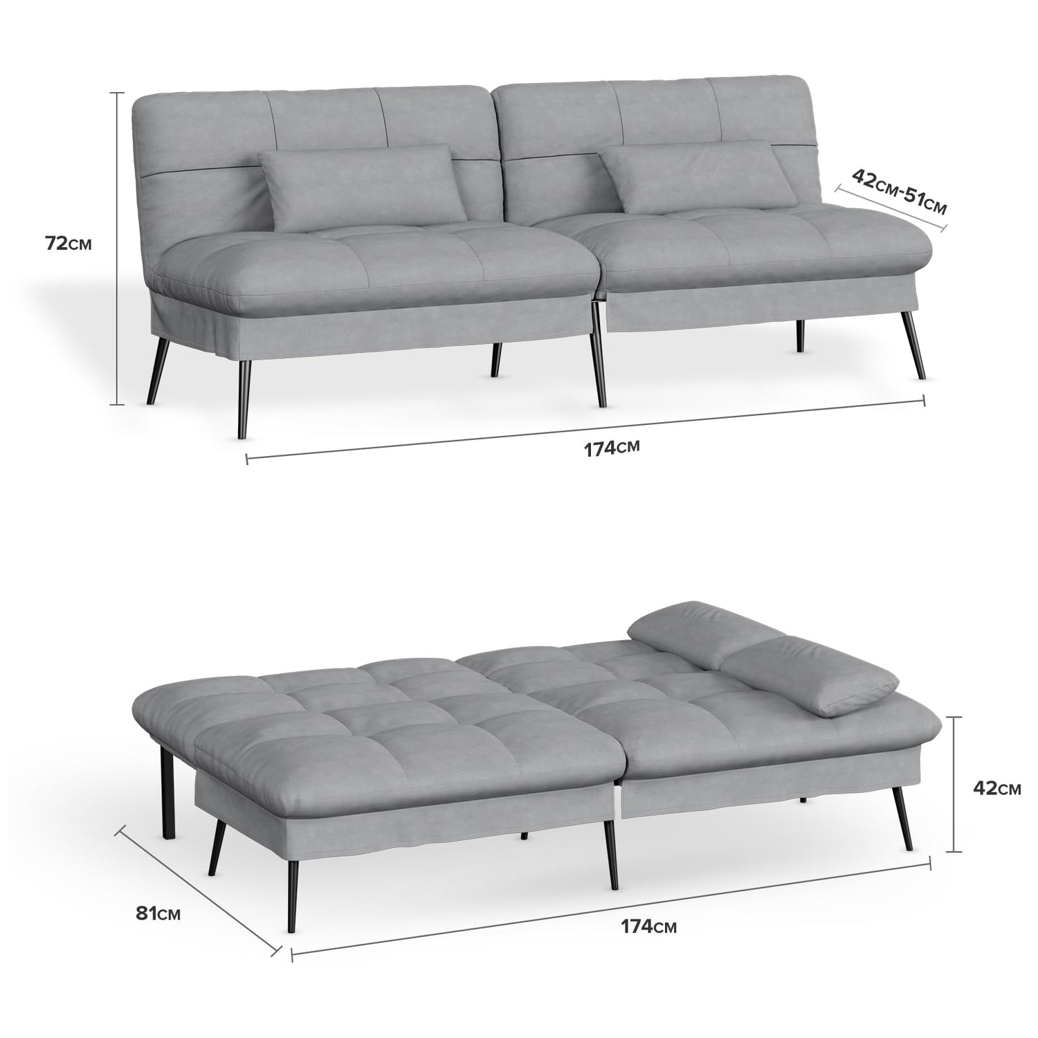 - ADDITIONAL SUPPORTIVE LEGS FOR STABILITY- Made to withstand heavy load the legs are made from firm and sturdy materials. As you turn the futon sofa bed just drag out the two legs from behind the backrest and place them on the floor for extra stability.