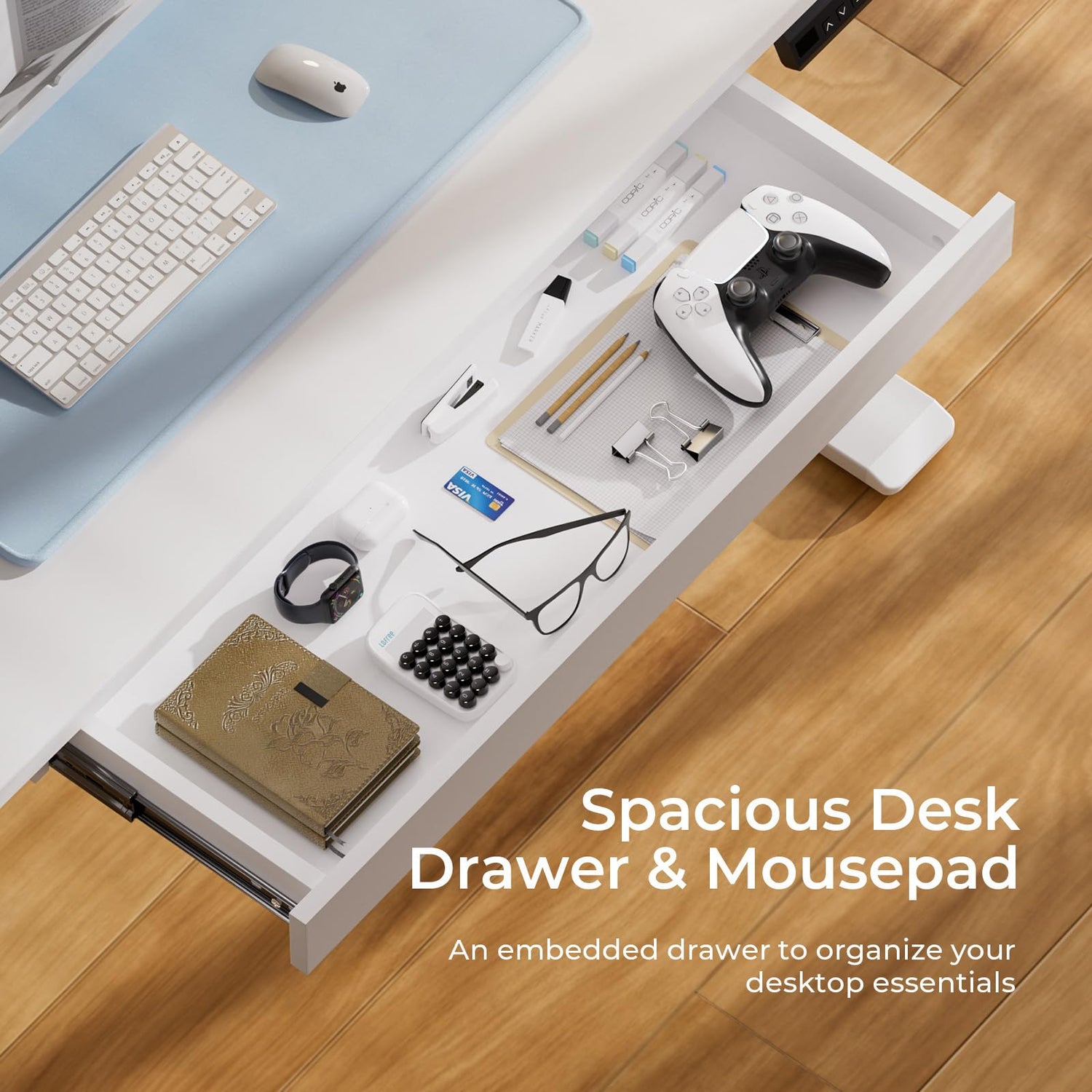 - Ample Storage Space: A convenient pull-out drawer embedded in the desktop provides seamless integrated storage space for your home office supplies. The white standing desk top shelves can hold files, books, and provide ample space for writing, paperwork, and other home office activities. Additionally, 2 versatile hooks offer additional storage convenience