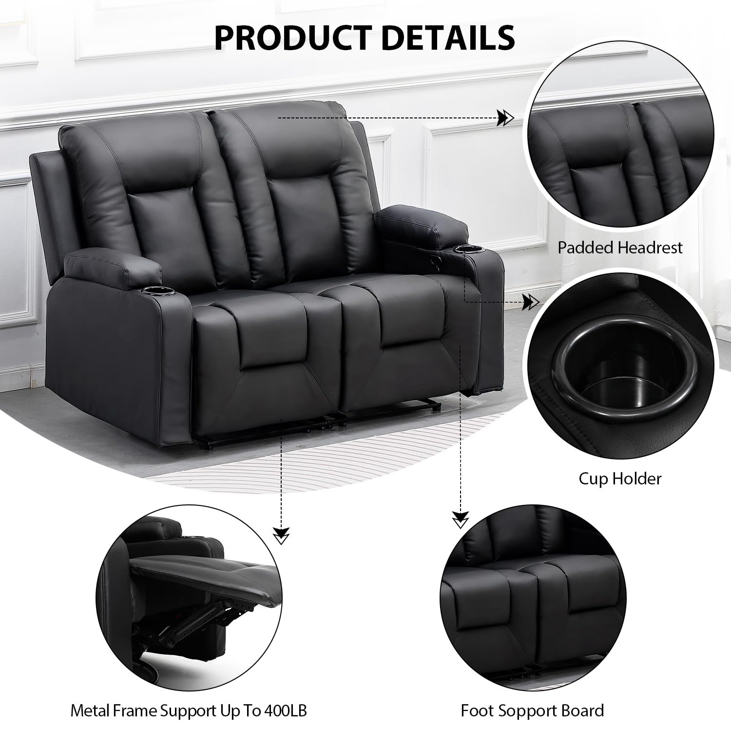 COMHOMA Leather Recliner Modern Loveseat Sofa, 2 Leather Recliner Chairs,Modern Small Sofa Couch,2 Seater PU Loveseat,Couches for Living Room with Drink Holders Living Room Chair Loveseat Sofa