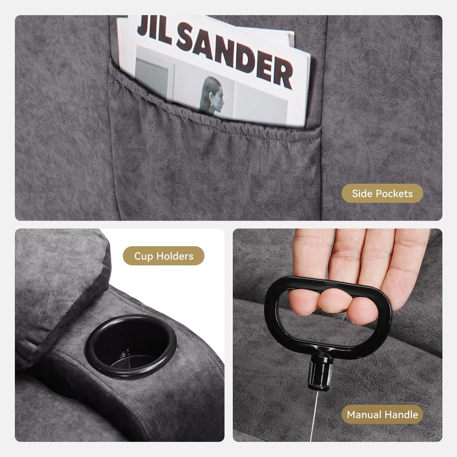 - CONVENIENT DESIGN - Enjoy your evening nights with your favorite shows lying on this Recline Chair Set as it’s built with cup holders on each side of the armrests, it also has wide side pockets enough to fit anything from your magazines and devices