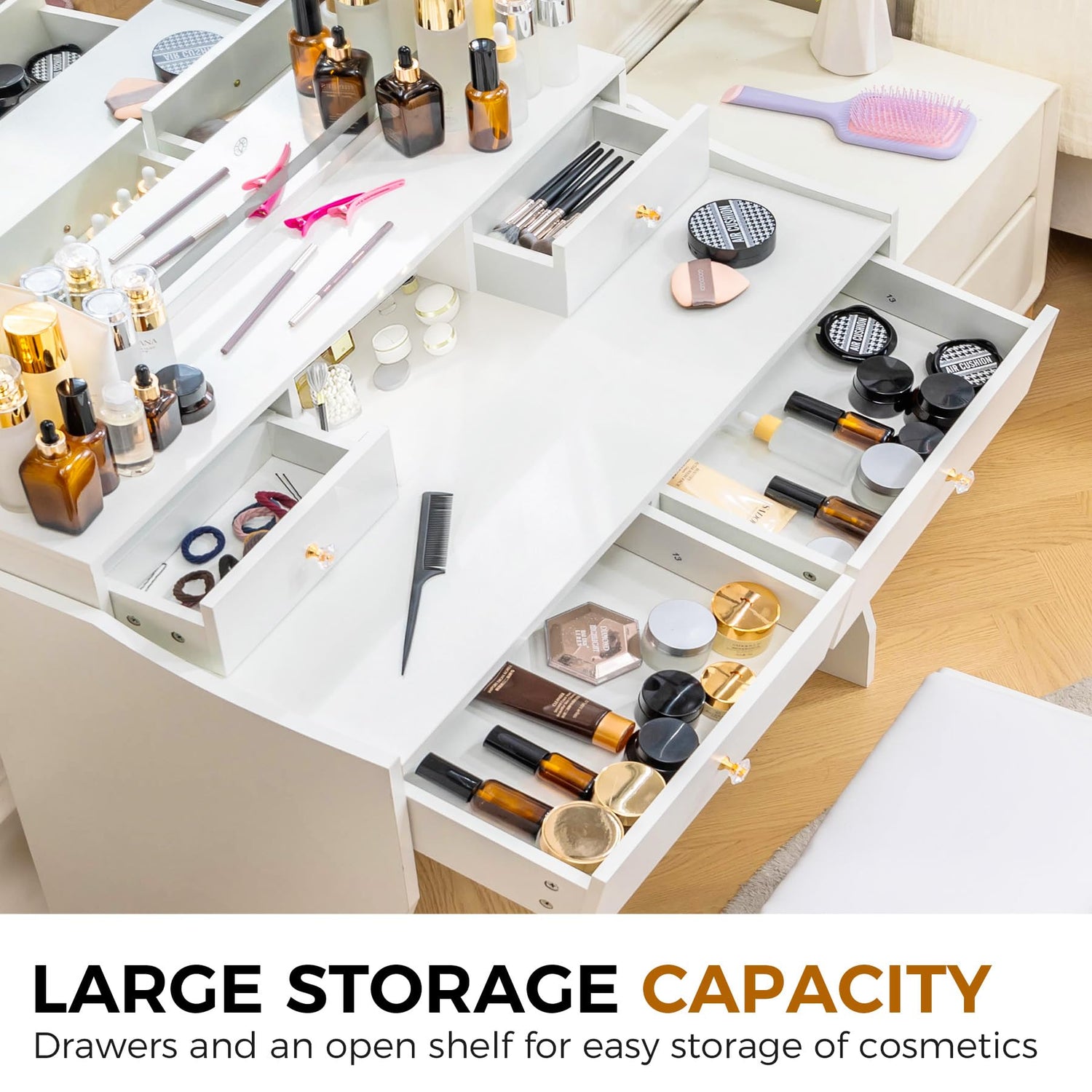 - Elegant and Durable Design - Finished in a timeless finish with crystal-inspired knobs, the vanity boasts premium construction and durability. You and your family may have it for a long-term use. All parts and accessories are labeled and you can easily assemble this vanity desk by following the clear instructions