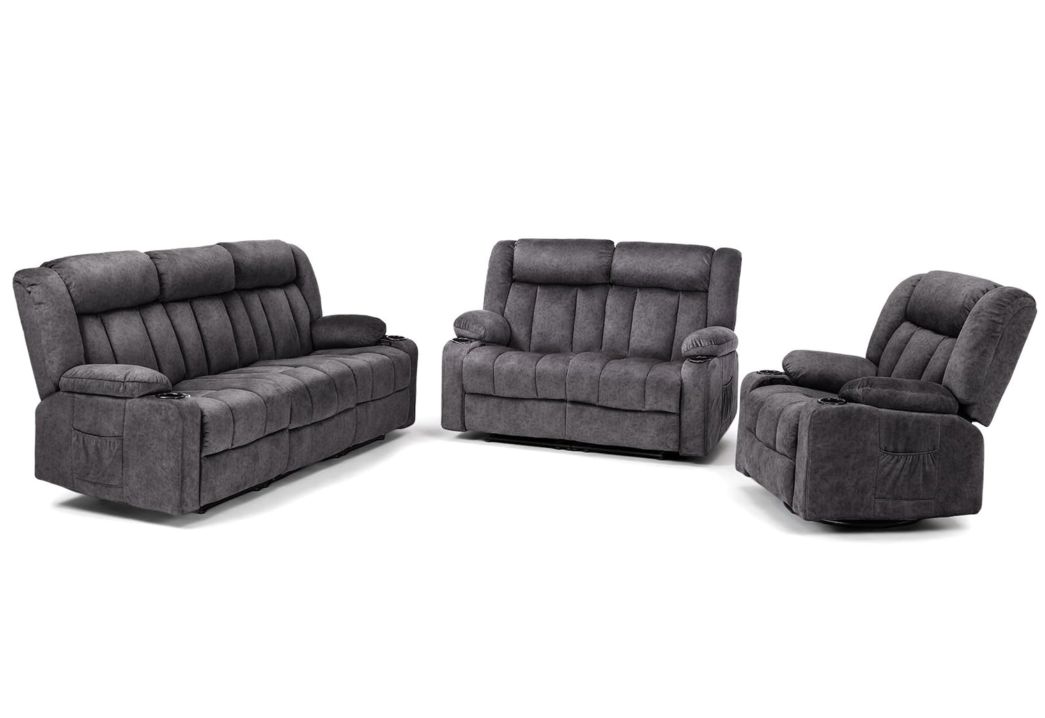 COMHOMA Manual Recliner Chair Set,Fabric Reclining Sofa Chair with Cup Holders, Upholstered Recliner with Side Pockets Suitable for Living Room Furniture (3+2+1)