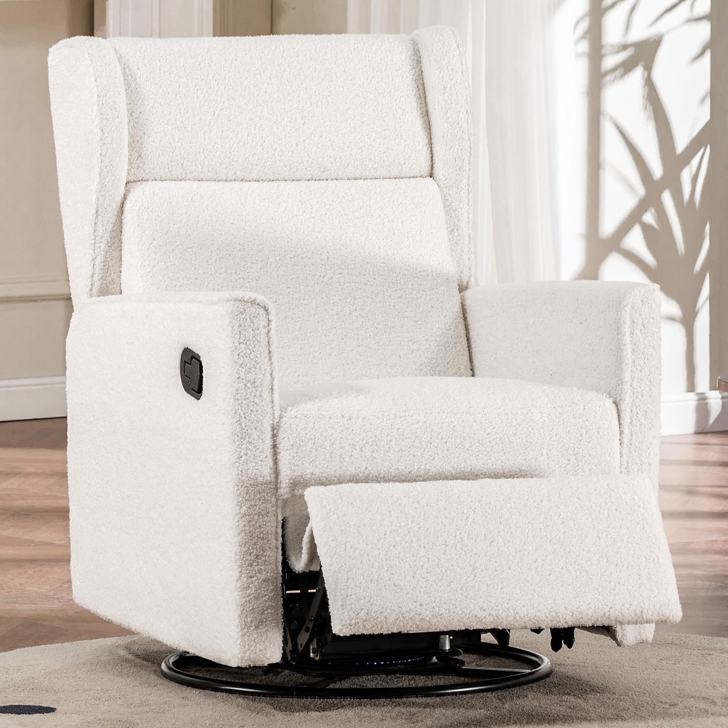 - 【Easy to Assemble】The rocker recliner chair only takes 10 minutes for one person to assemble.According to the instructions provided,it only takes a few steps to install the backrest and the widened two-wing backrest.Our swivel recliner is a great choice at home